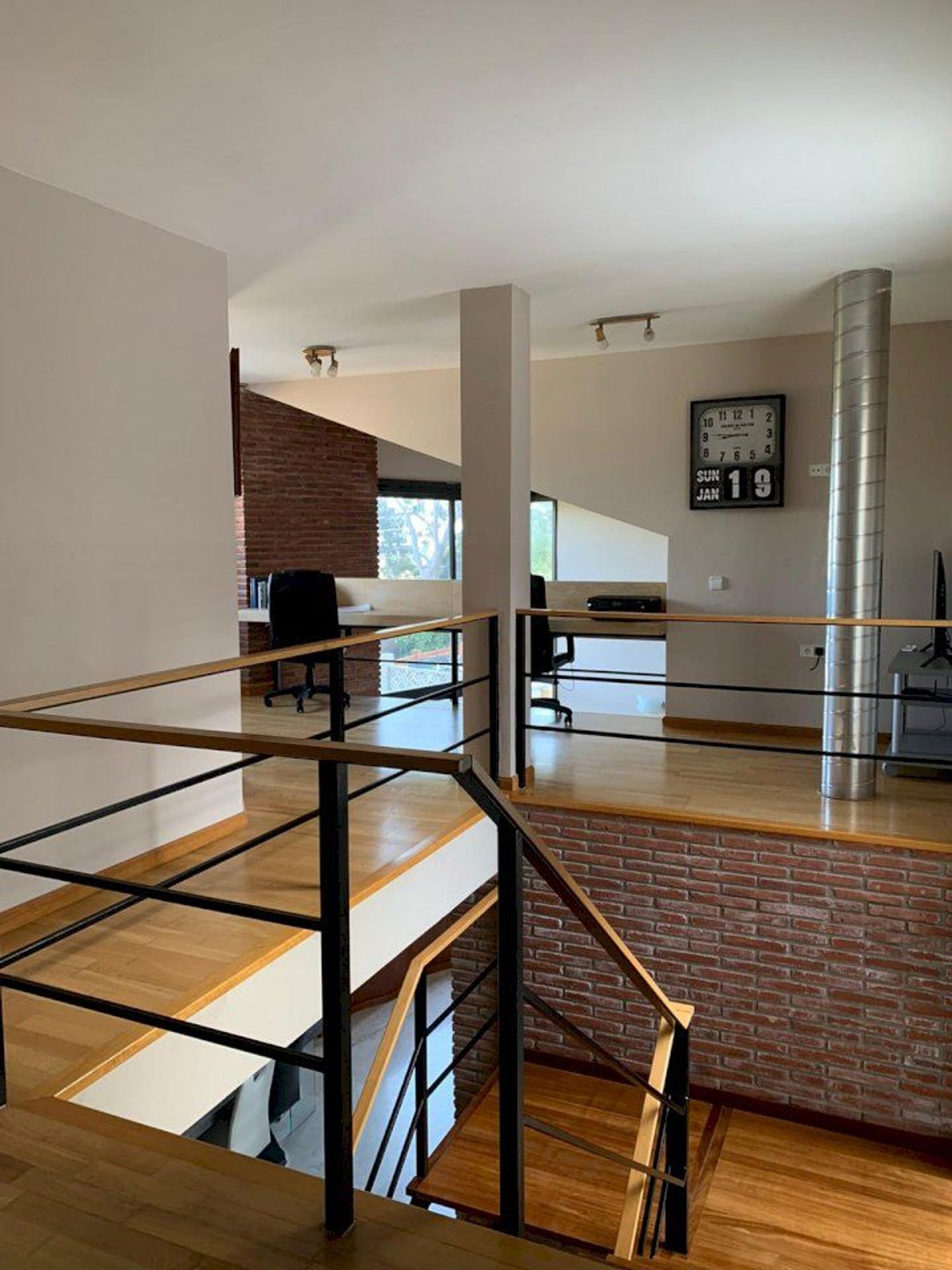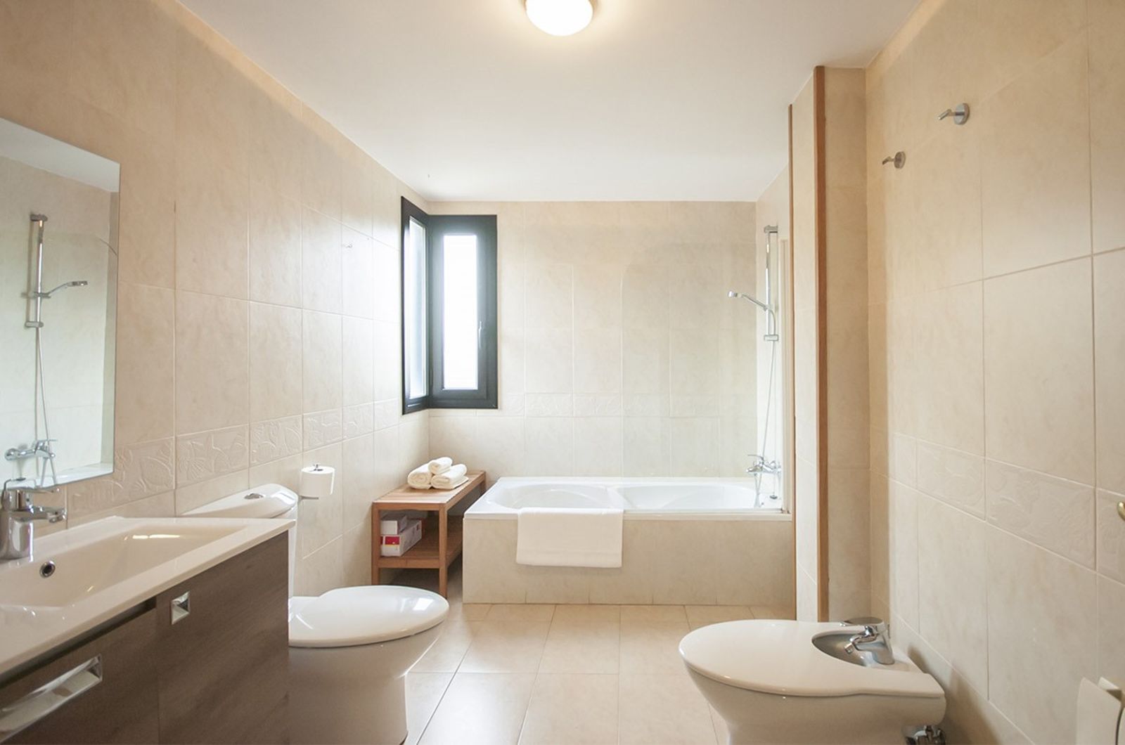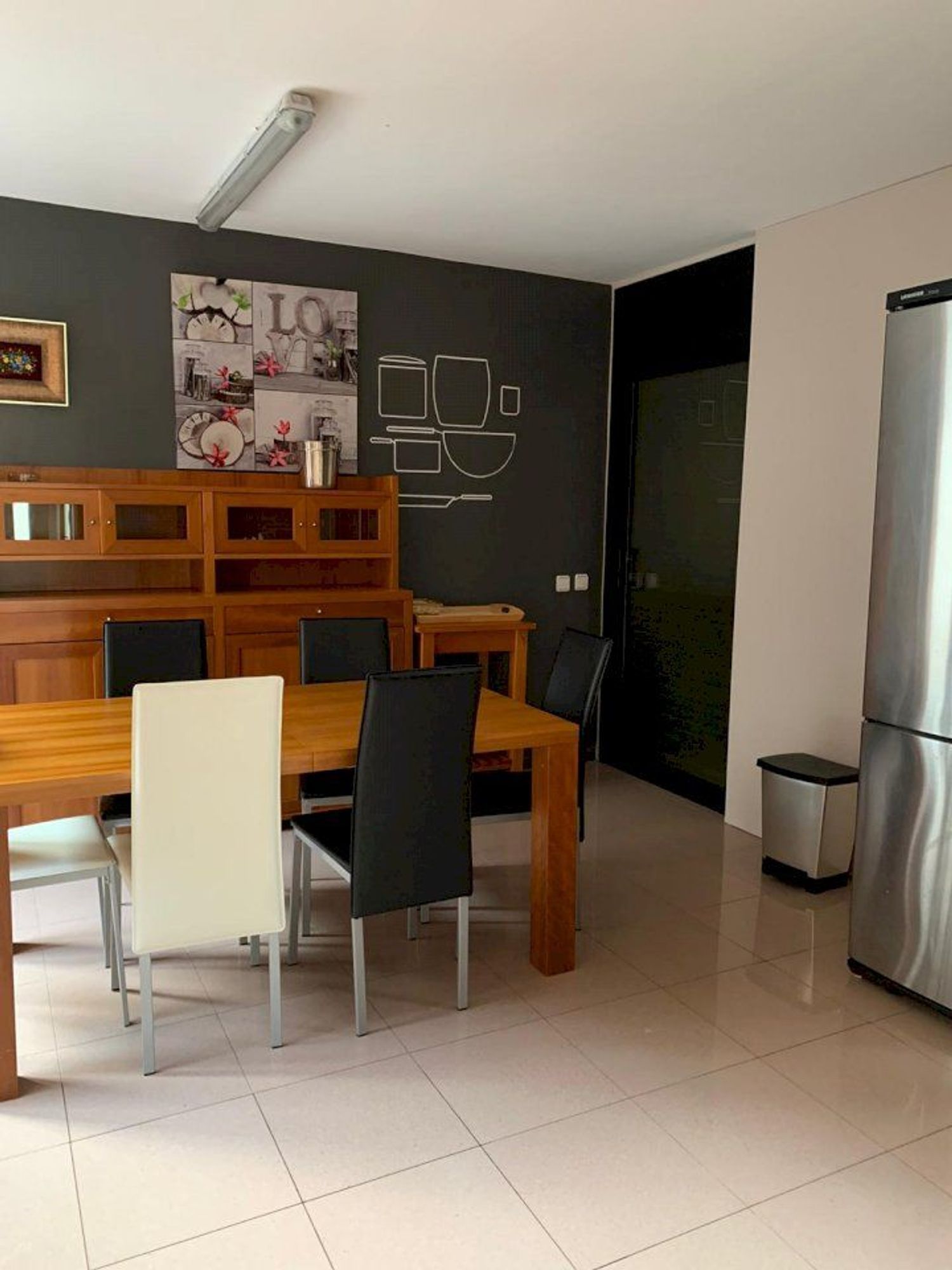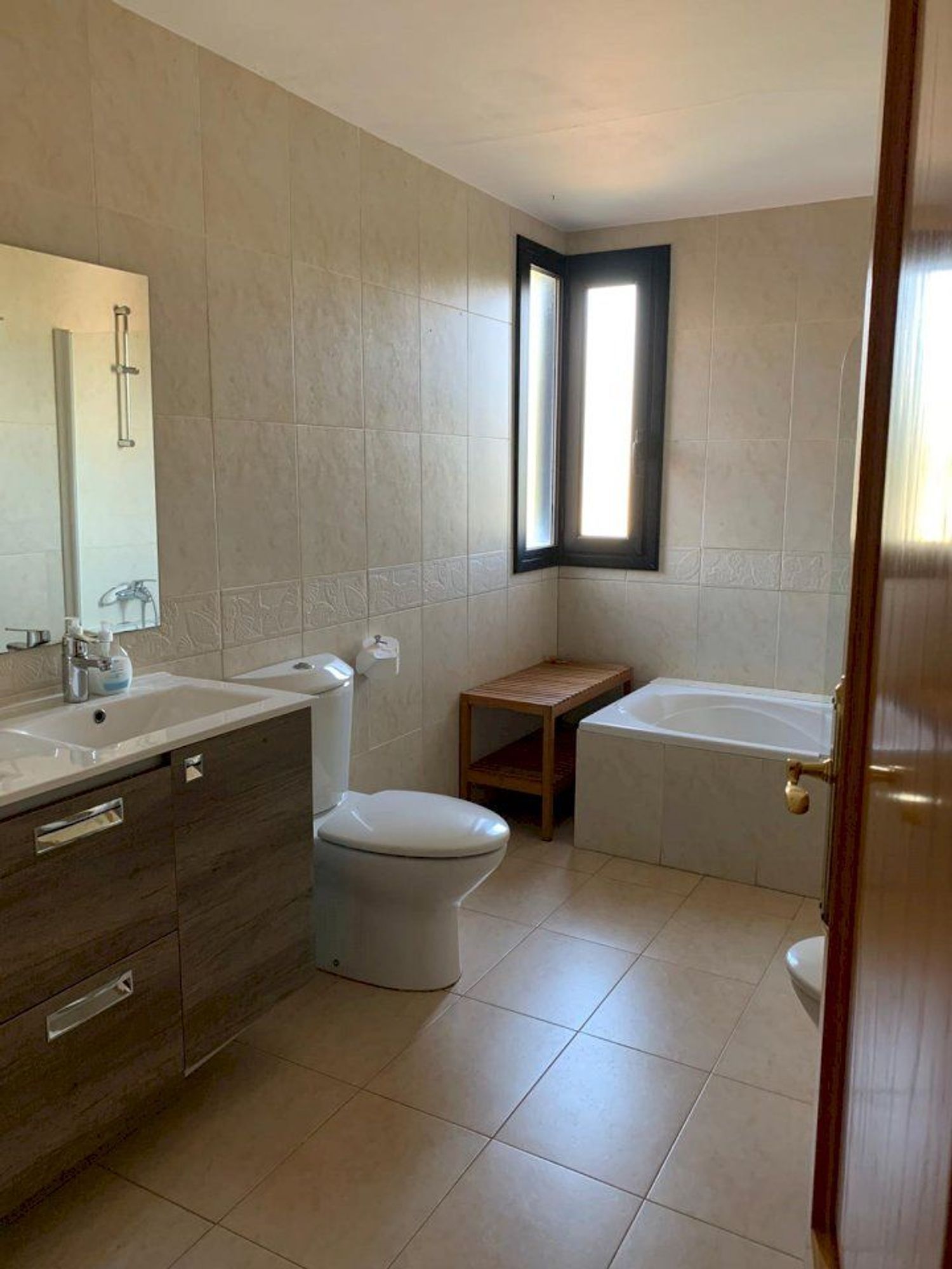 La proprietà offre una superficie totale di 332 m² con una distribuzione funzionale pensata per la vita familiare. Il piano principale, di 108 m², presenta un ampio soggiorno con sala da pranzo in open space, grandi vetrate e soffitti a doppia altezza che garantiscono luce naturale durante tutto il giorno. La cucina indipendente, completamente attrezzata, ha accesso diretto alla terrazza e alla zona barbecue. Su questo stesso livello si trovano una camera da letto e un bagno completo.