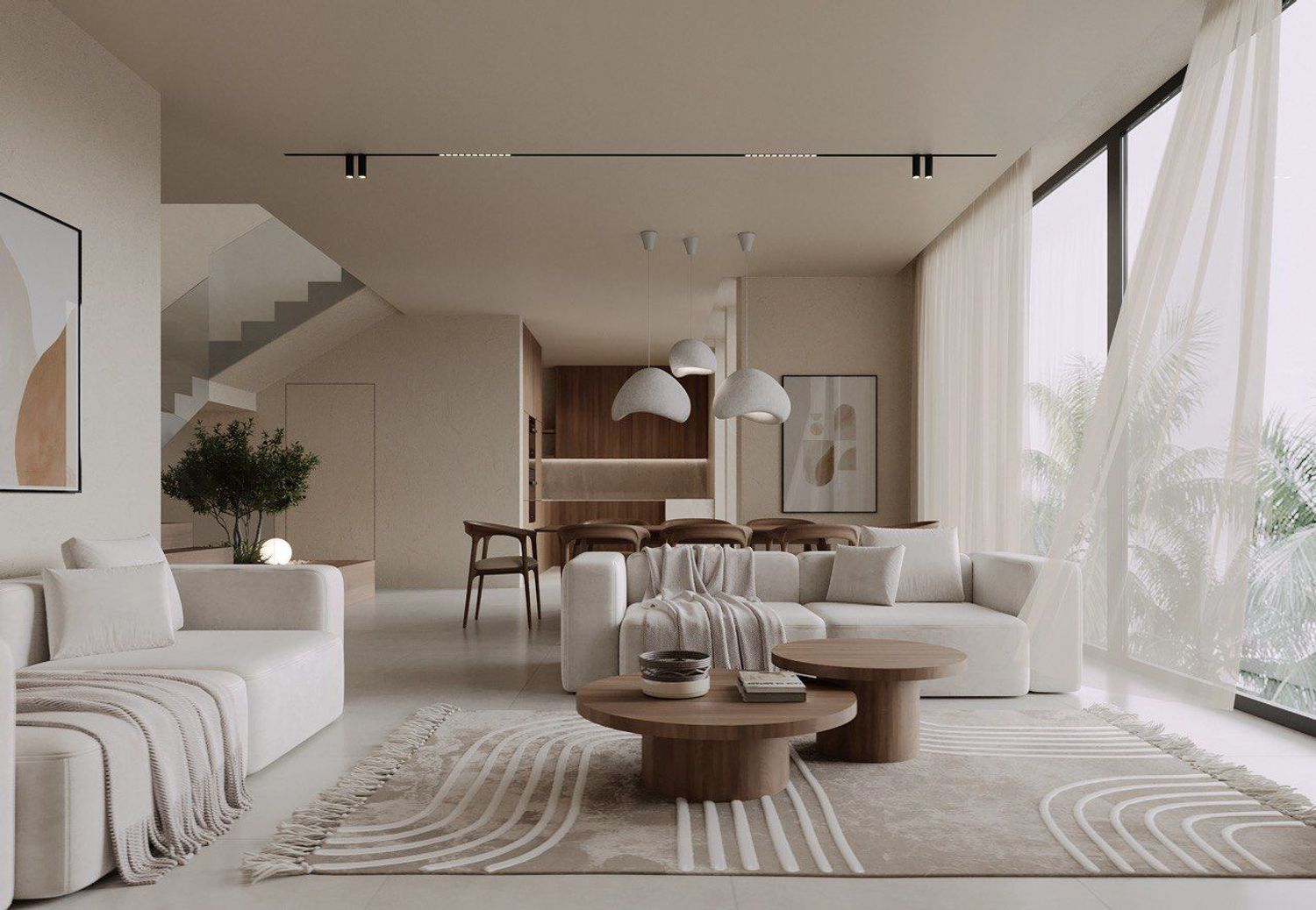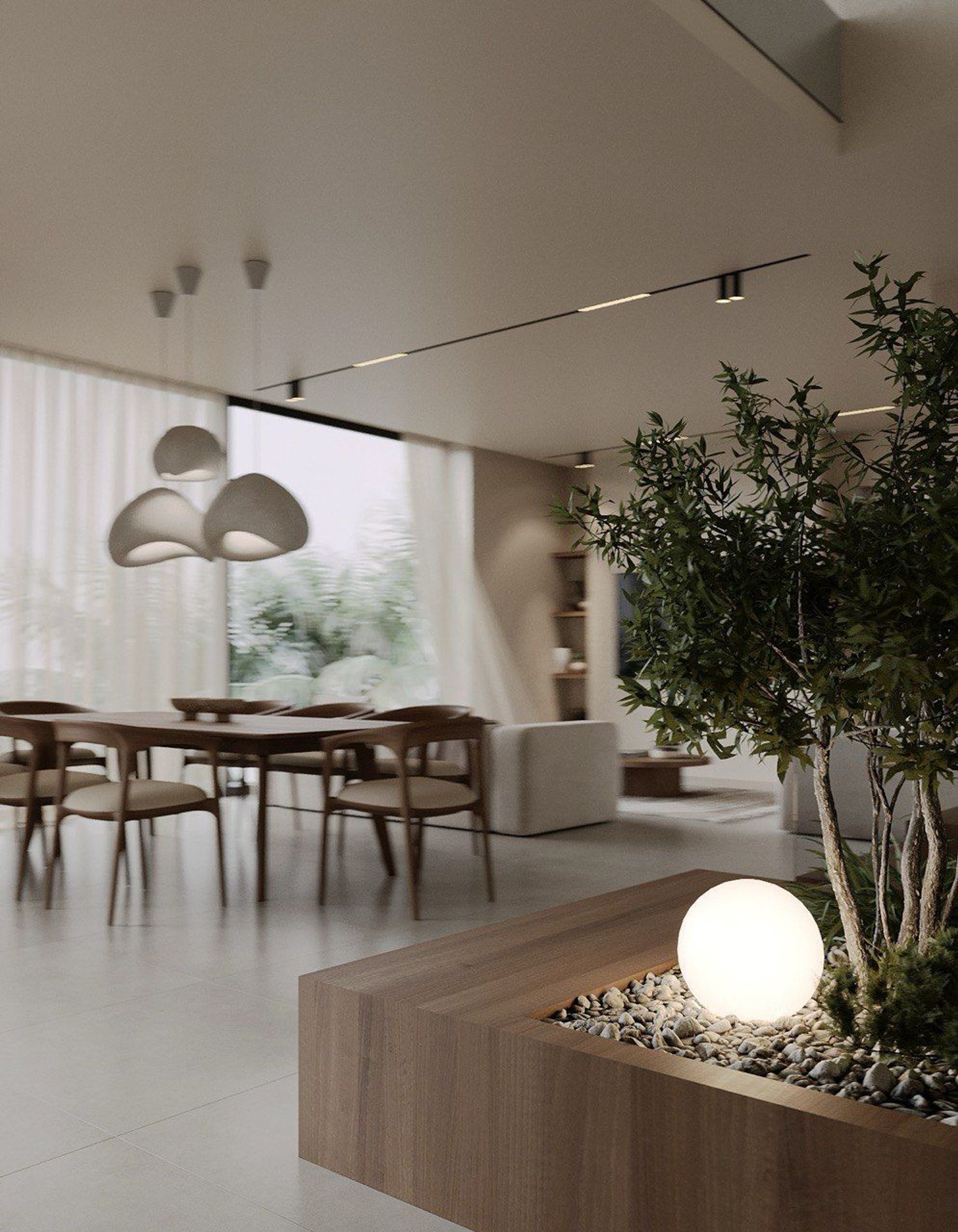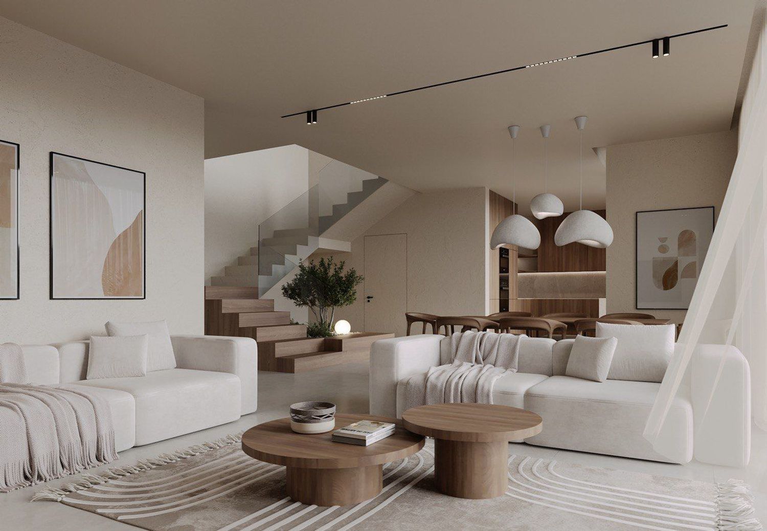 Con 260 m² di superficie, la casa offre interni luminosi ed equilibrati, pensati per garantire benessere e ampiezza. Il soggiorno-pranzo di 37 m² si apre verso l’esterno attraverso grandi vetrate che incorniciano il paesaggio e inondano lo spazio di luce naturale. La cucina moderna, completamente attrezzata, unisce design e funzionalità in un ambiente elegante e sereno.