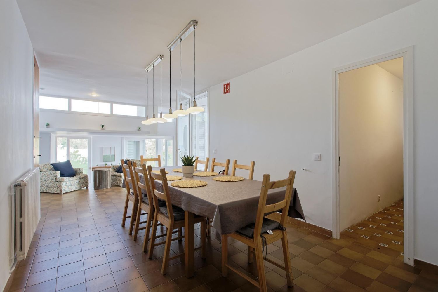 La casa è distribuita principalmente su un unico livello con due mezzi piani, offrendo una disposizione confortevole e funzionale con diverse suite e una luminosa zona giorno con cucina, sala da pranzo e soggiorno con camino affacciato sul mare.