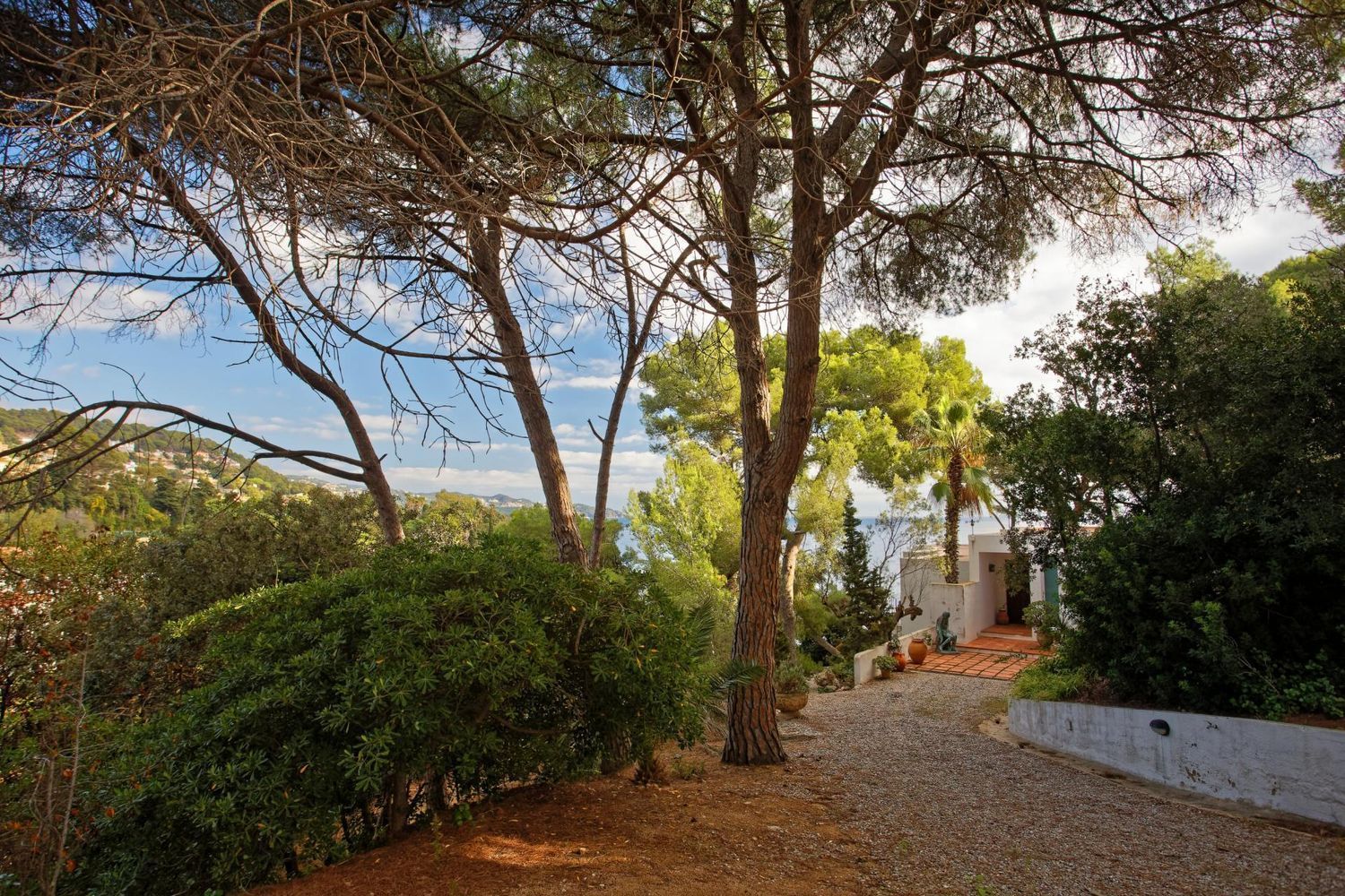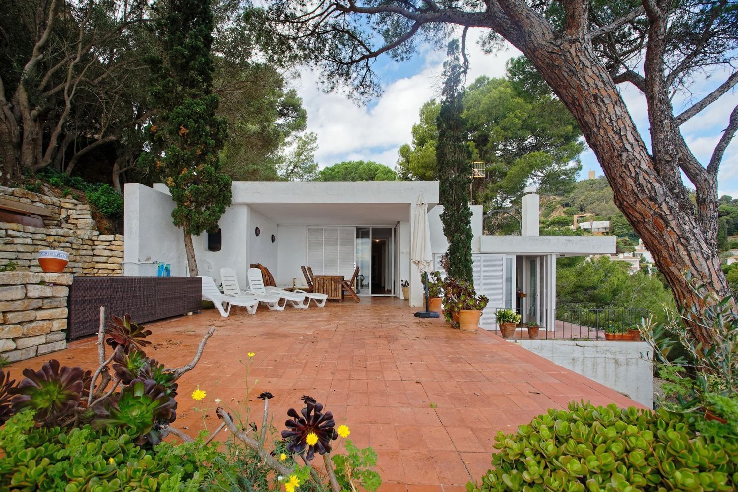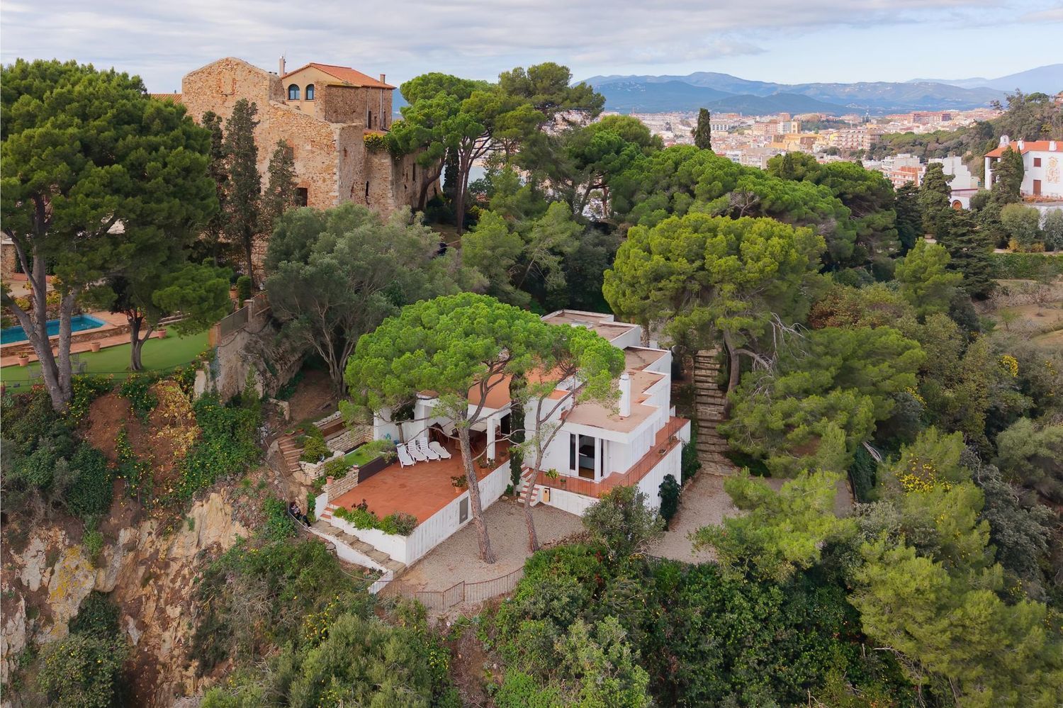 Arroccata su una scogliera e circondata dalla vegetazione mediterranea, la villa gode di spettacolari viste panoramiche sul mare da quasi tutte le stanze. Le grandi vetrate e l’eccellente orientamento permettono alla luce naturale di illuminare gli interni durante tutta la giornata, mentre le ampie terrazze invitano a vivere il mare in prima linea.