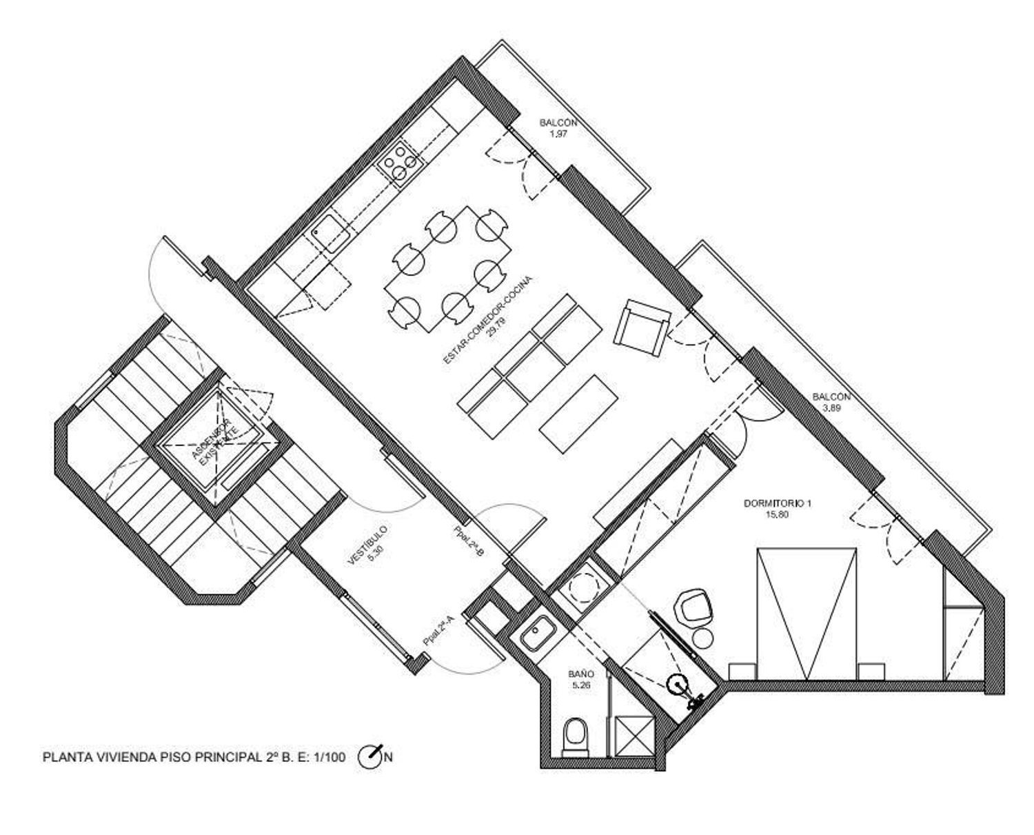 Posto al piano principale di un edificio classico, l’immobile dispone di circa 62 m² ed è completamente esterno, garantendo luce naturale in ogni ambiente, una caratteristica poco comune nella zona dell’Eixample.