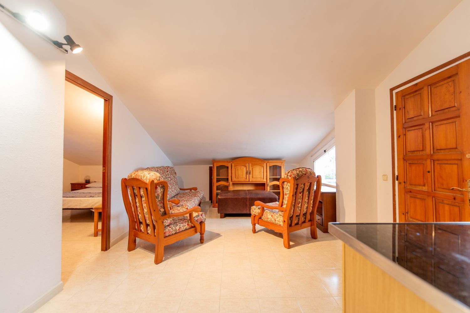 L’abitazione è distribuita su due piani. Il piano principale comprende un soggiorno luminoso, cucina separata con accesso alla terrazza, quattro camere da letto e due bagni.
