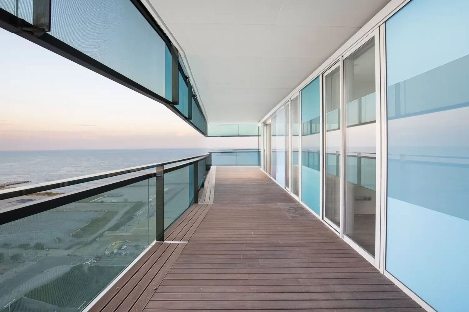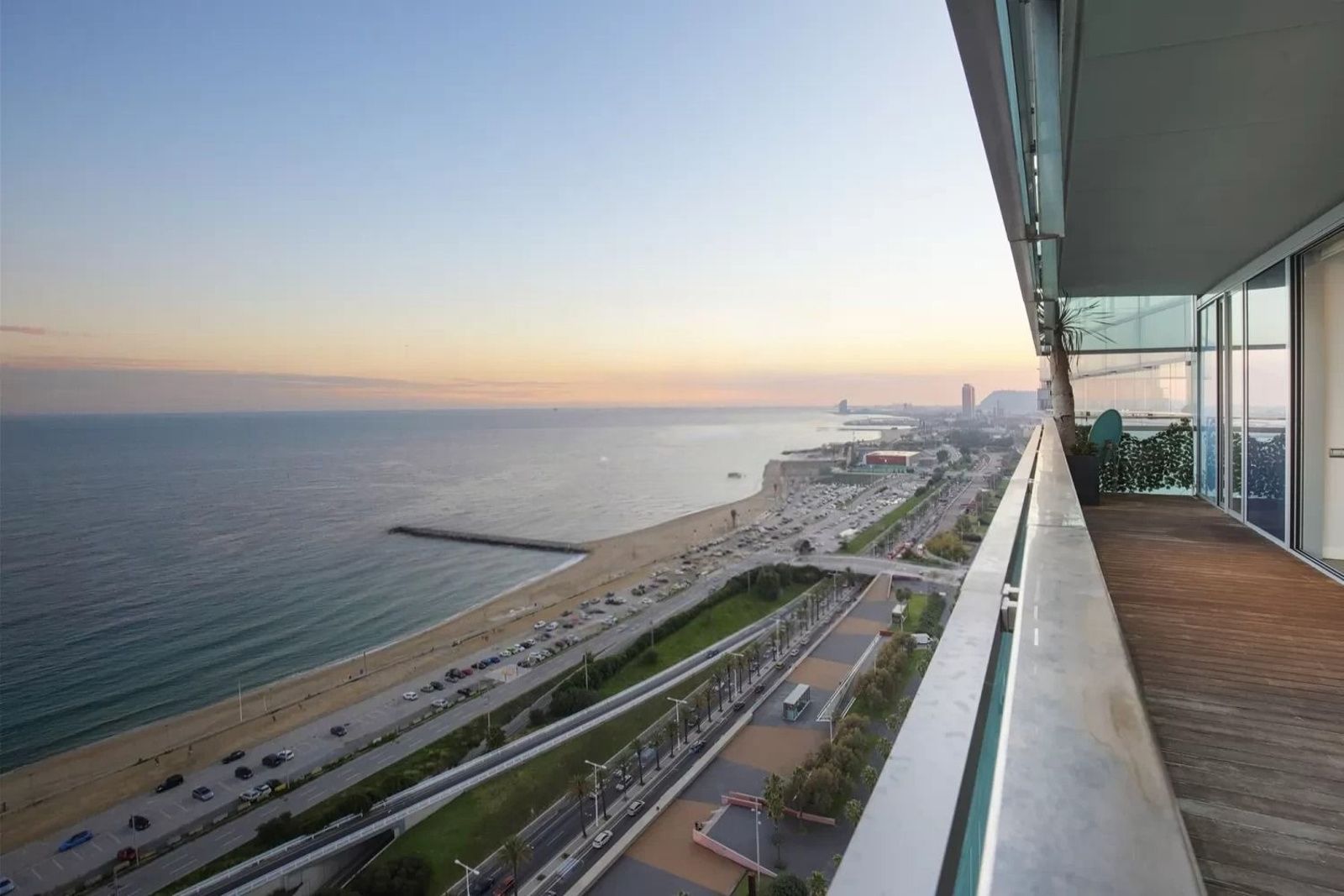Denne elegante leiligheten ligger i 23. etasje ved strandlinjen i Barcelona og tilbyr spektakulær utsikt over havet fra alle rom.