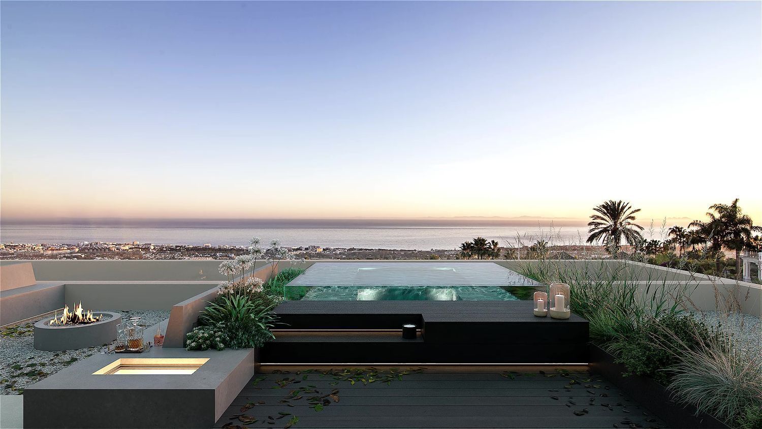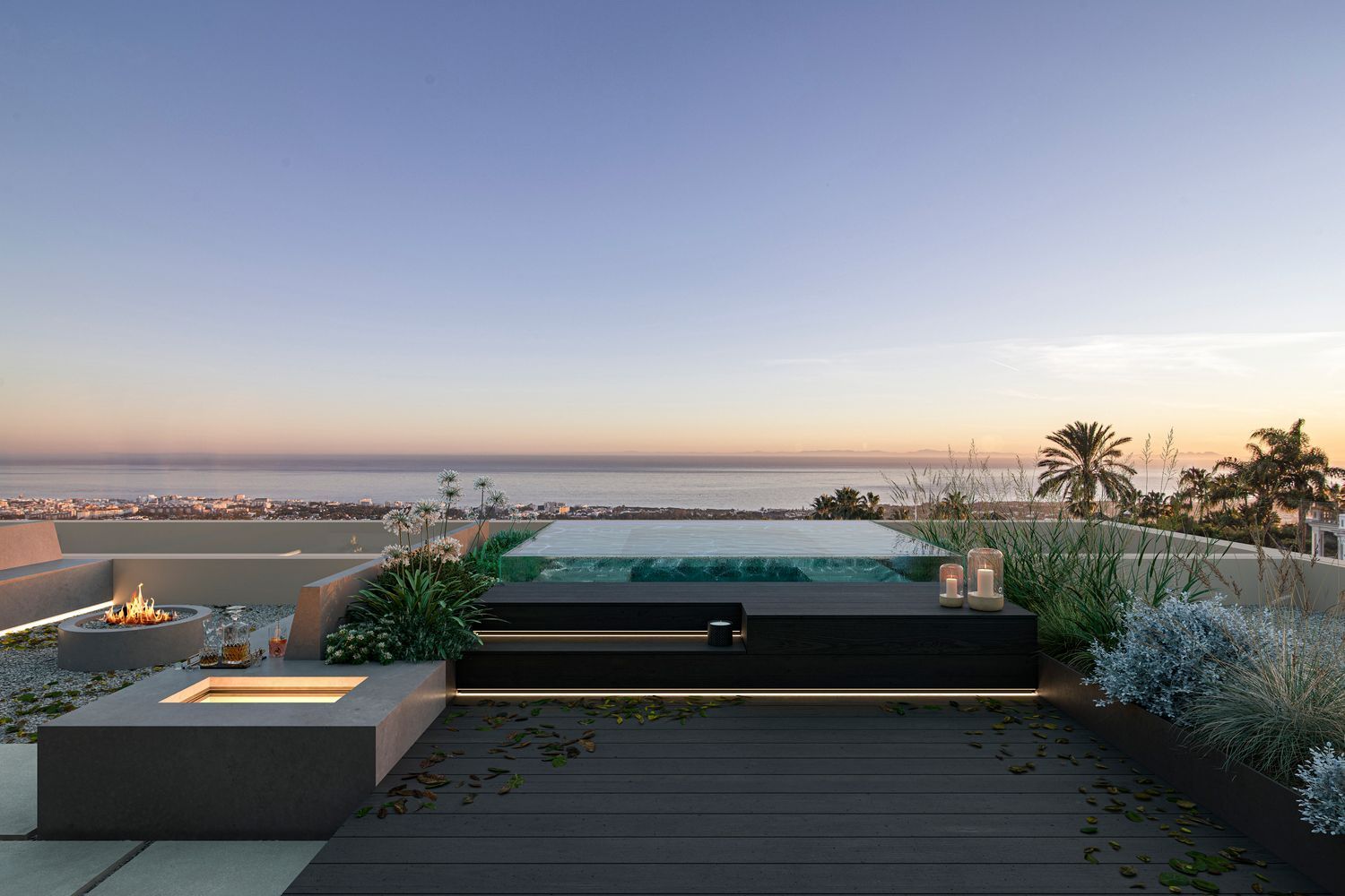 Uteområdene imponerer med et spektakulært basseng omgitt av prydhager med lokale arter og en elegant chill-out-sone – perfekt for å nyte frisk luft i fullstendig privatliv.
