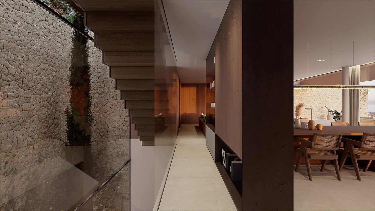Boligen har 6 soverom, alle med eget bad, som gir høyeste nivå av komfort og privatliv. Innvendig finner man en romslig stue-spisestue med rikelig naturlig lys, et designdrevet fullt utstyrt kjøkken med hvitevarer av topp kvalitet, og en spisestue med åpen utsikt mot det naturlige landskapet.