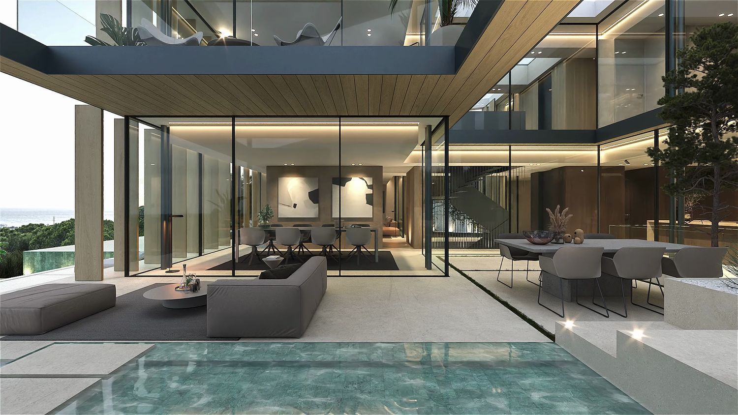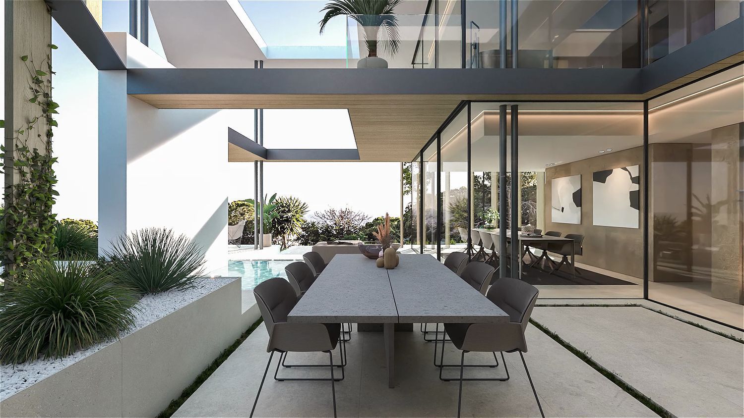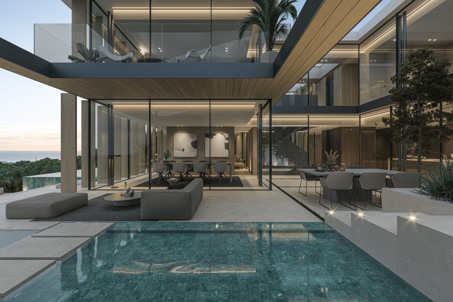 Plassert på en tomt på 1.009 m² med majestetisk havutsikt, representerer denne nybygde eiendommen en referanse for eleganse, design og enestående komfort. Med en overflate på 600 m² redefinerer boligen konseptet moderne luksus.