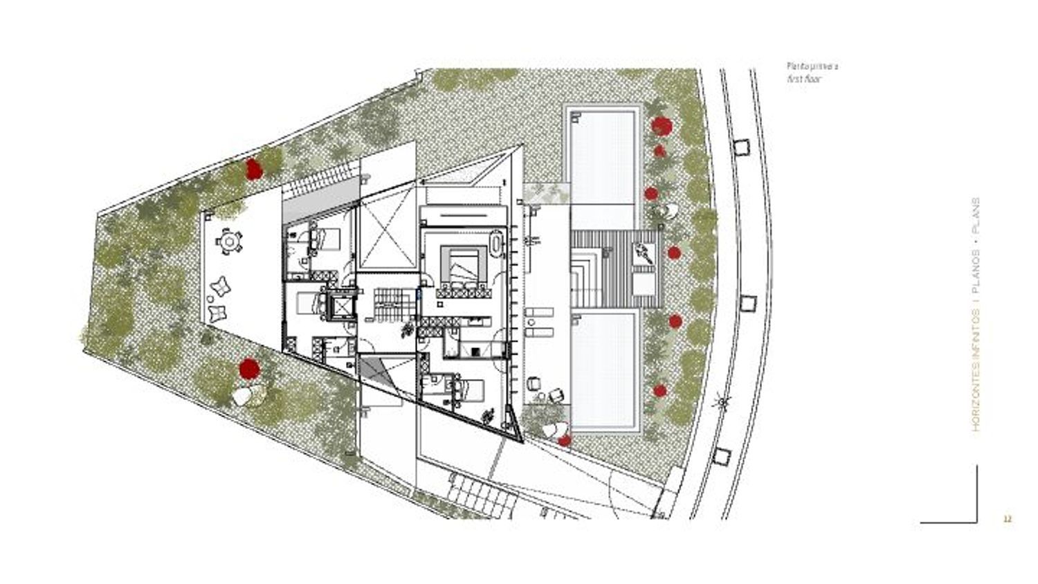 Soveområdet består av fem soverom, alle en suite. Alle rommene har tilgang til private terrasser med panoramautsikt over omgivelsene.