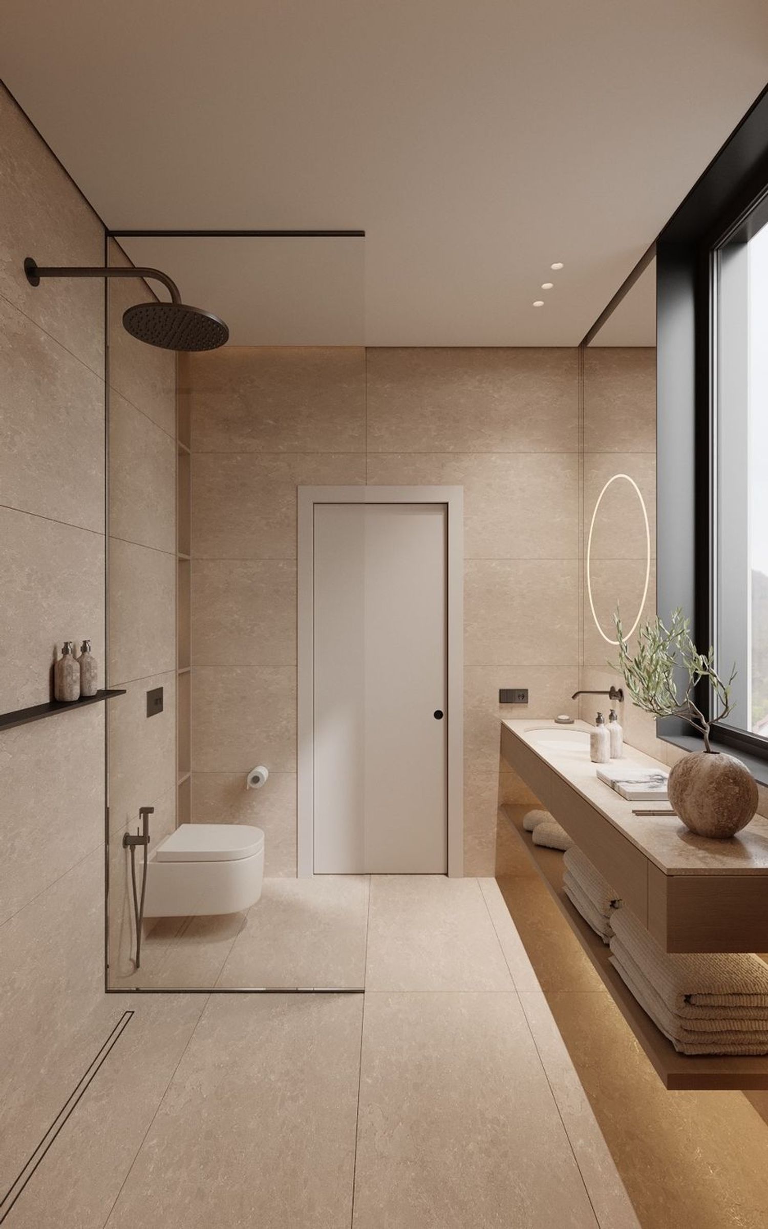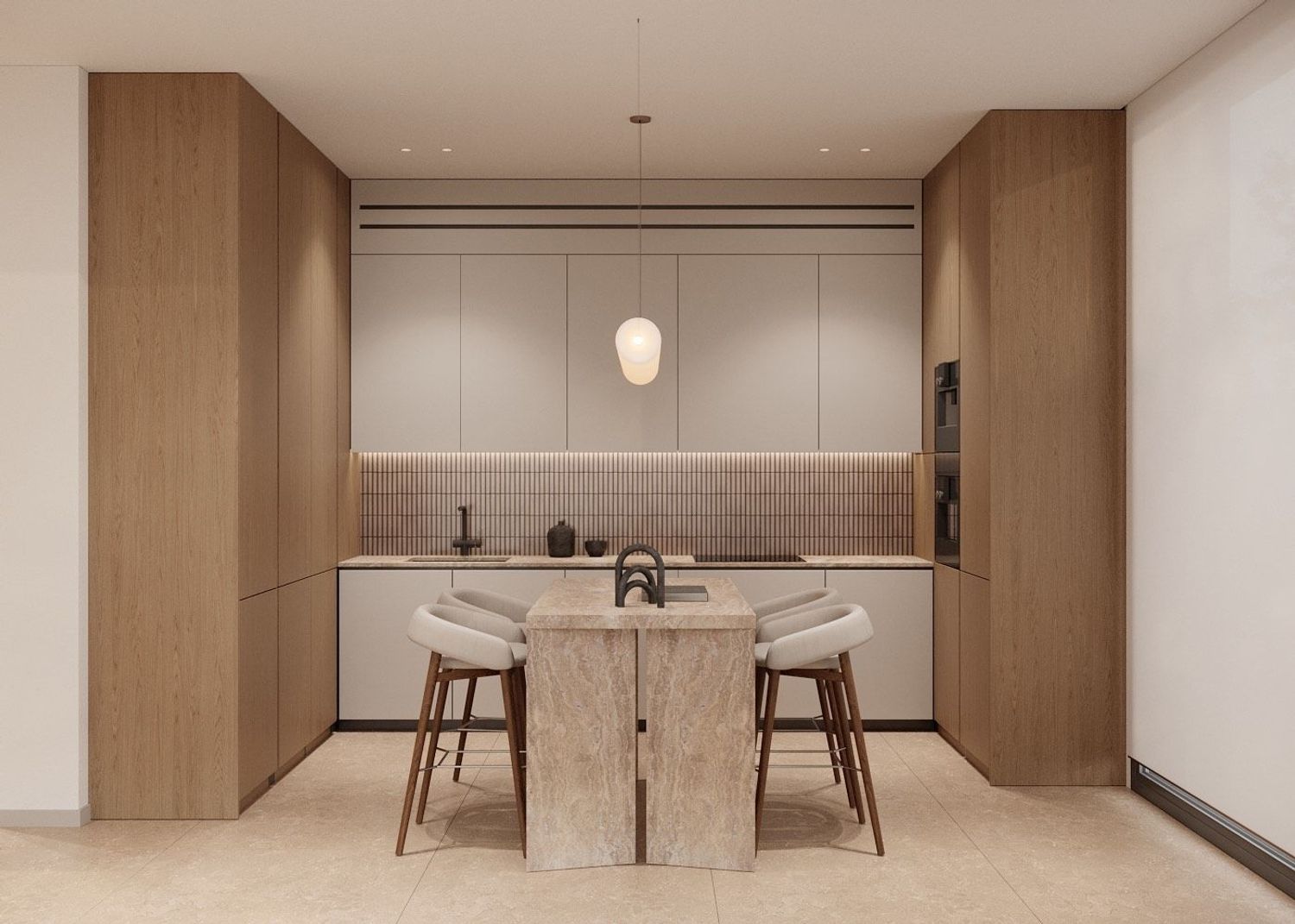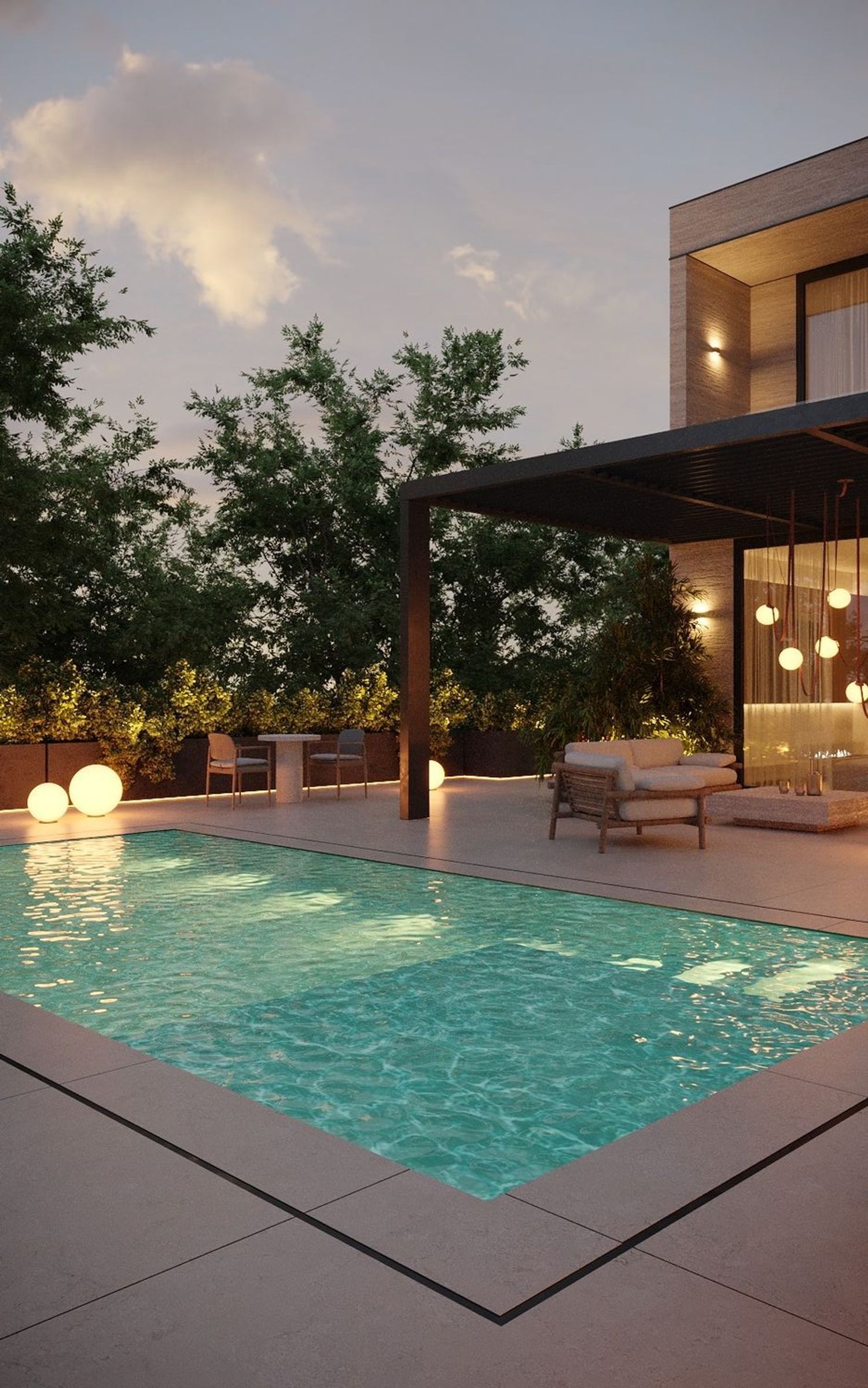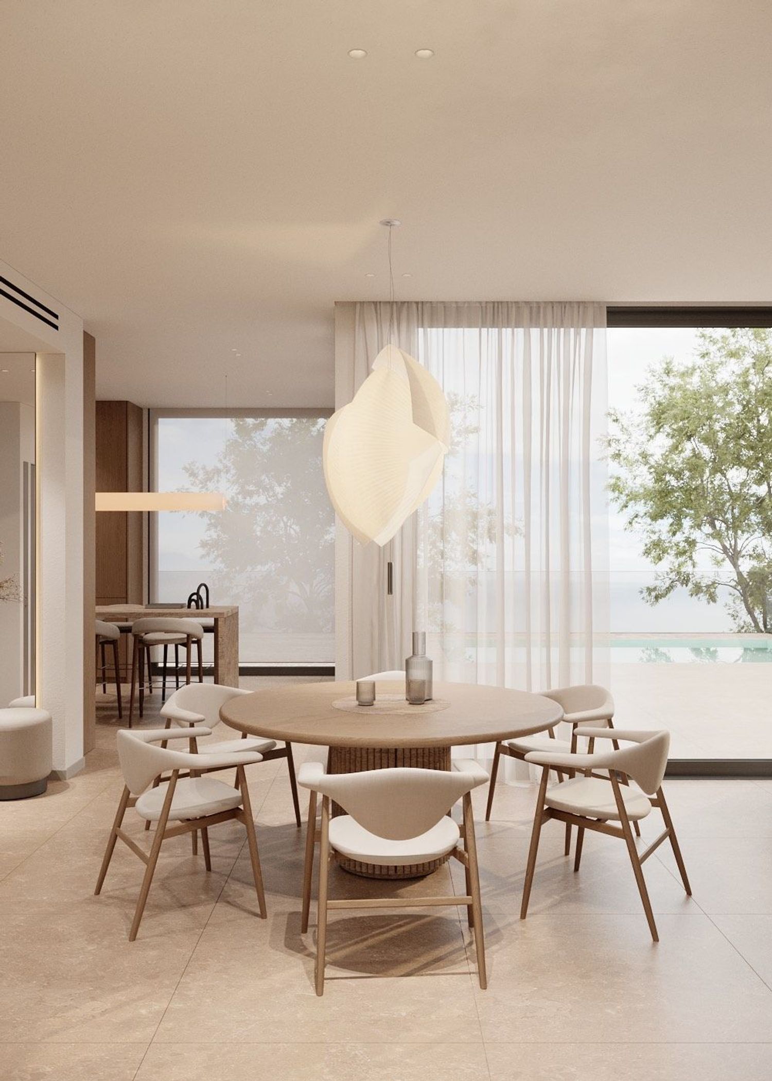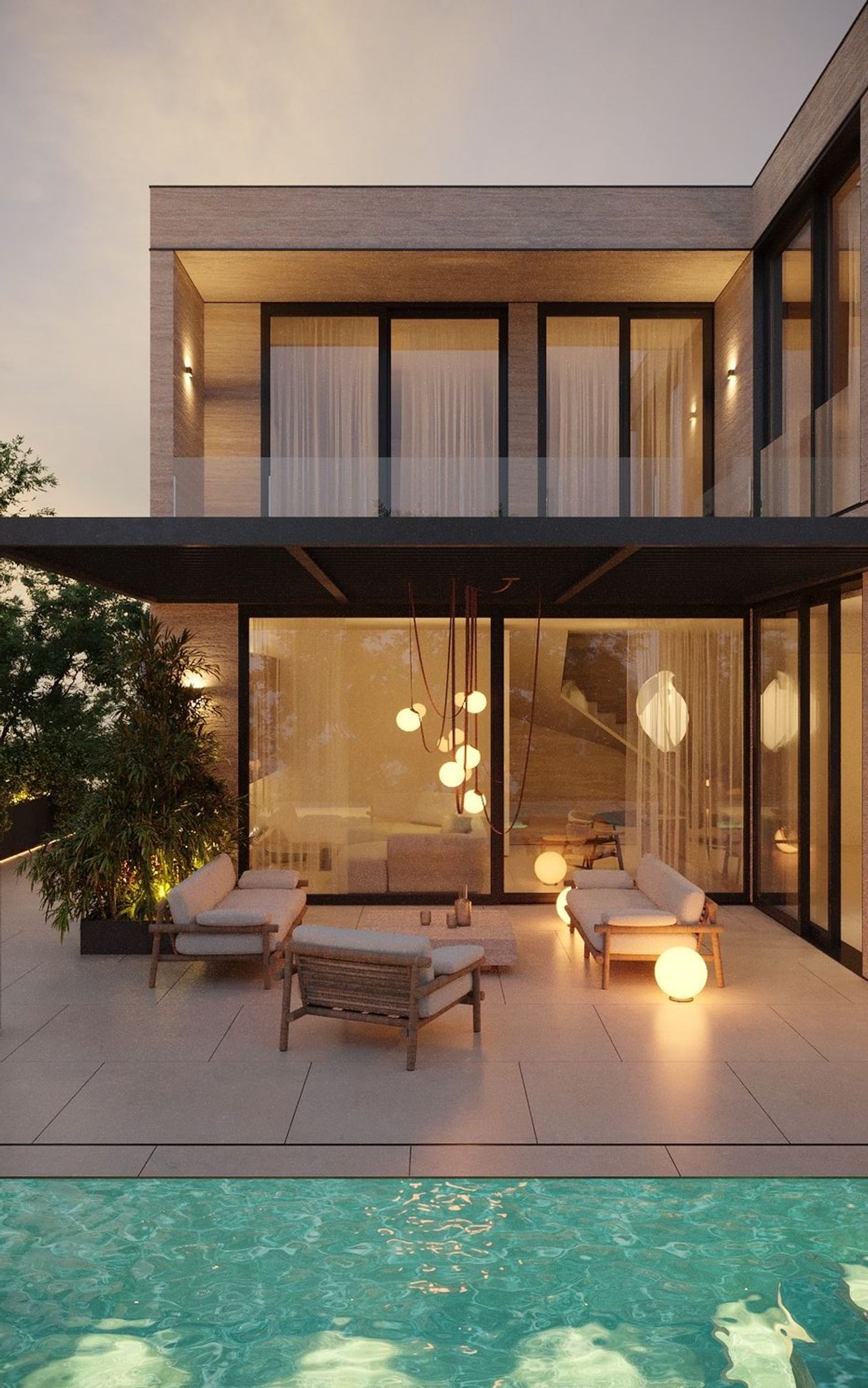 Prosjektet omfatter en total flate på 308 m² fordelt på lyse og velproporsjonerte rom. Den romslige stue/spisestuen åpner seg mot uteområdene og skaper en flytende overgang mellom interiør og natur. Det fullutstyrte kjøkkenet kombinerer funksjonalitet og design, mens de fire soverommene tilbyr plass, lys og privatliv, ledsaget av fire gjennomtenkte bad. Heisen gir et ekstra nivå av komfort og tilgjengelighet i hverdagen.
