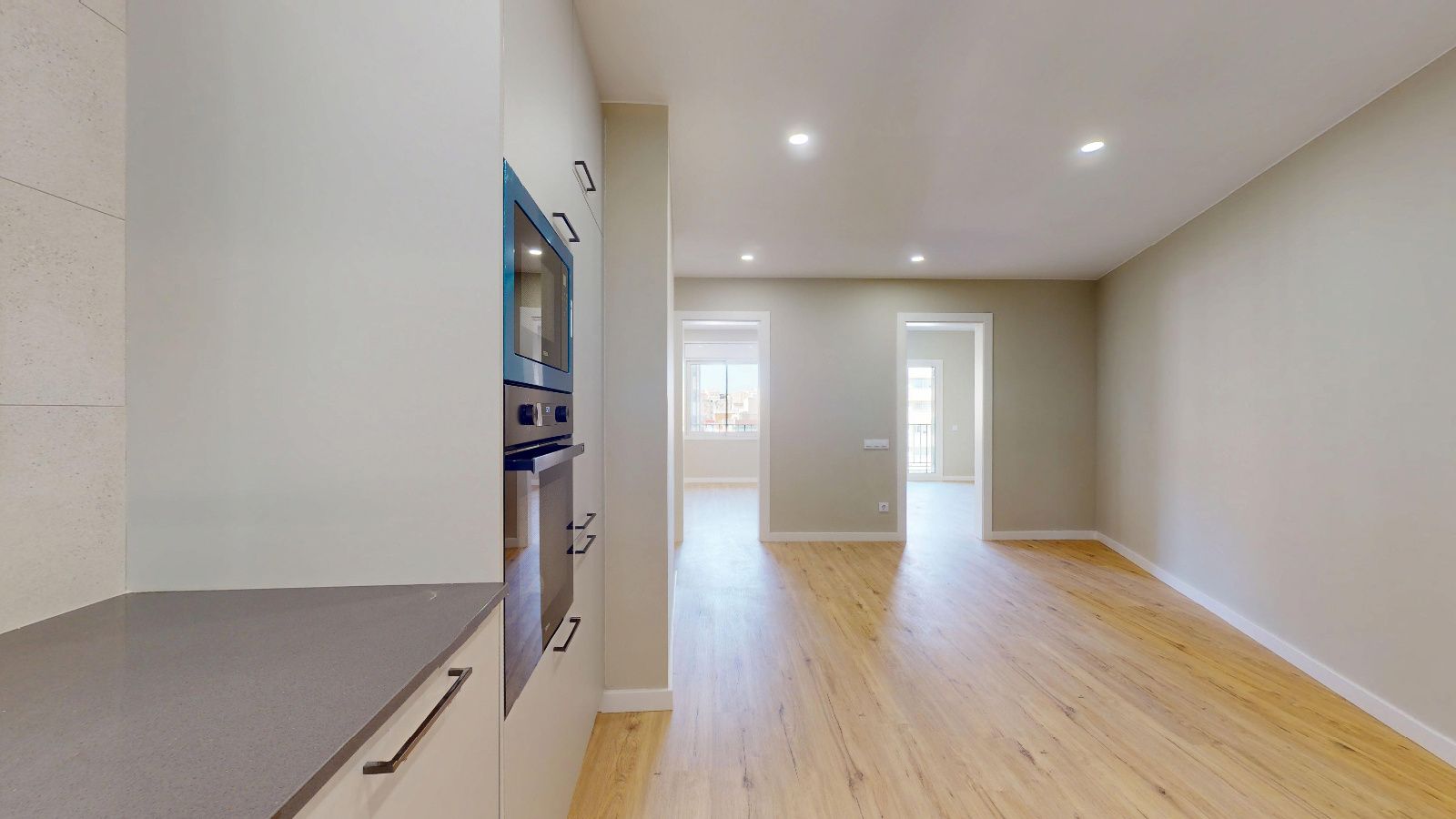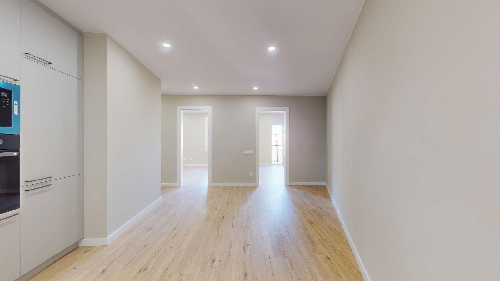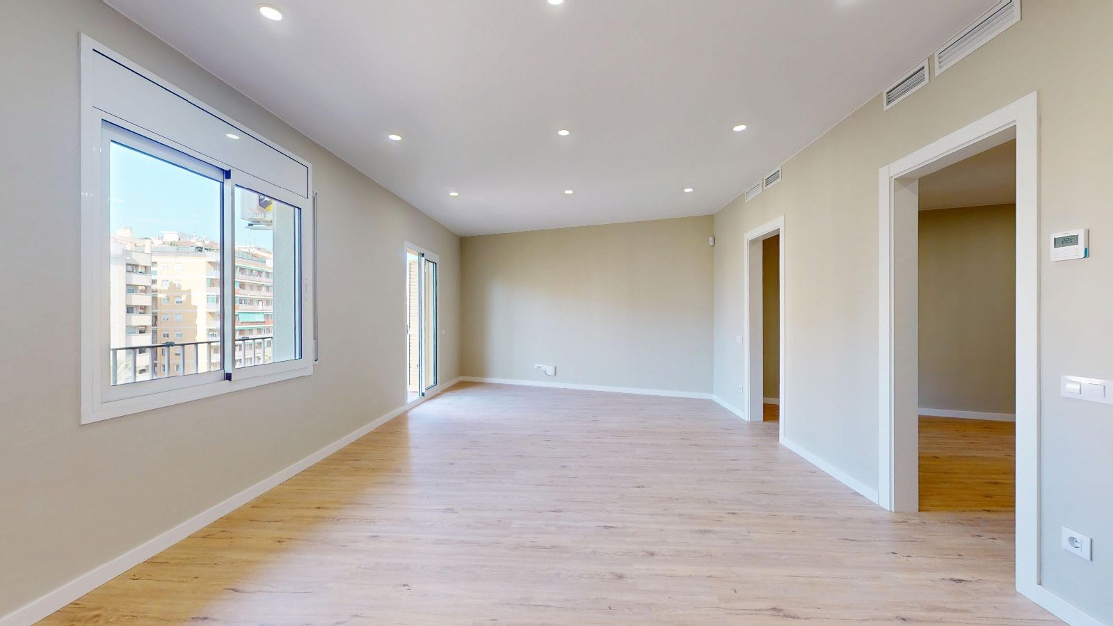 Denne leiligheten i en høy etasje er utvendig og har to orienteringer som gir godt dagslys og naturlig gjennomlufting. Den rolige gaten og utsikten gir en behagelig atmosfære, mens de to balkongene —6,95 m² og 2,13 m²— gir ekstra uteareal.