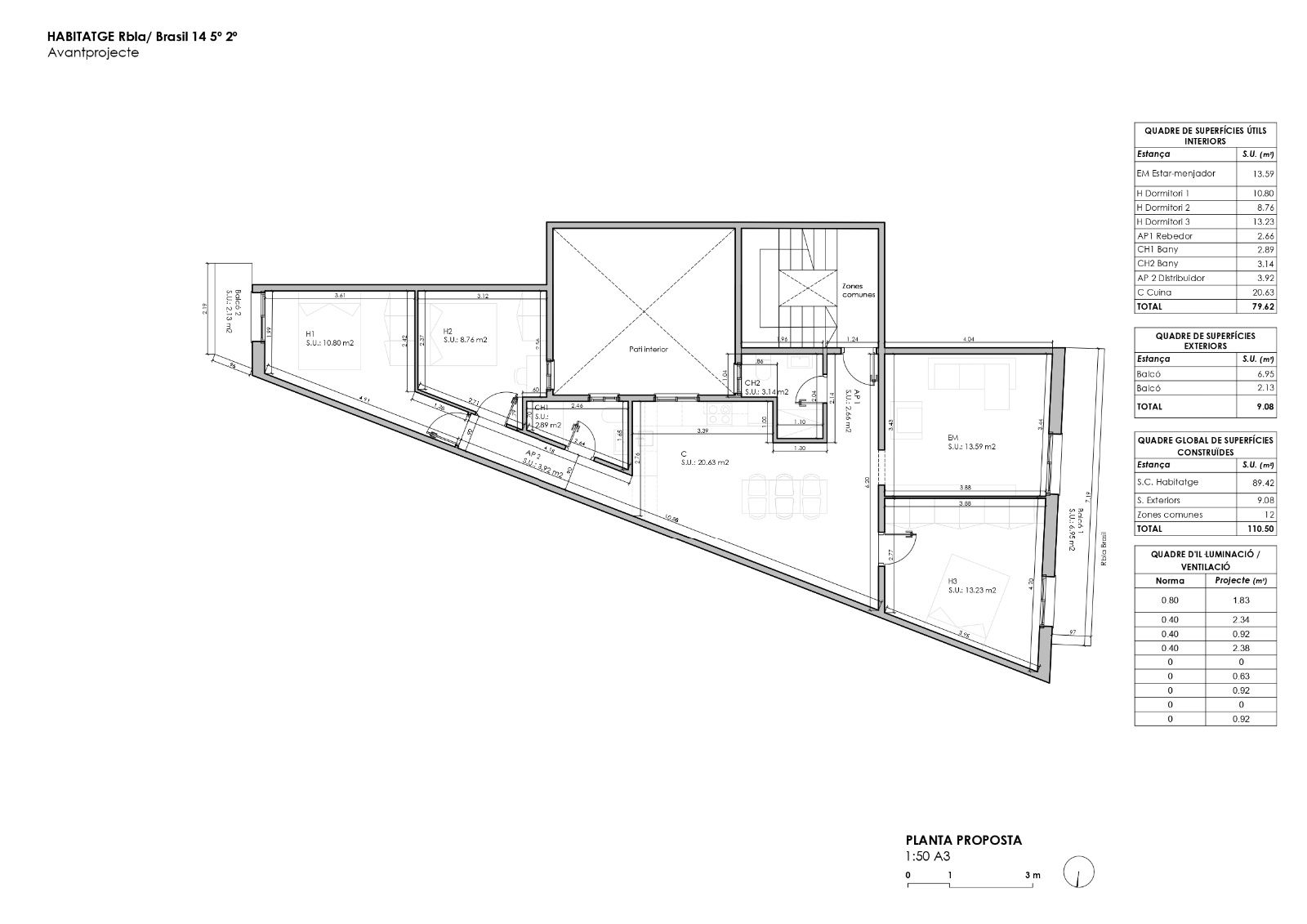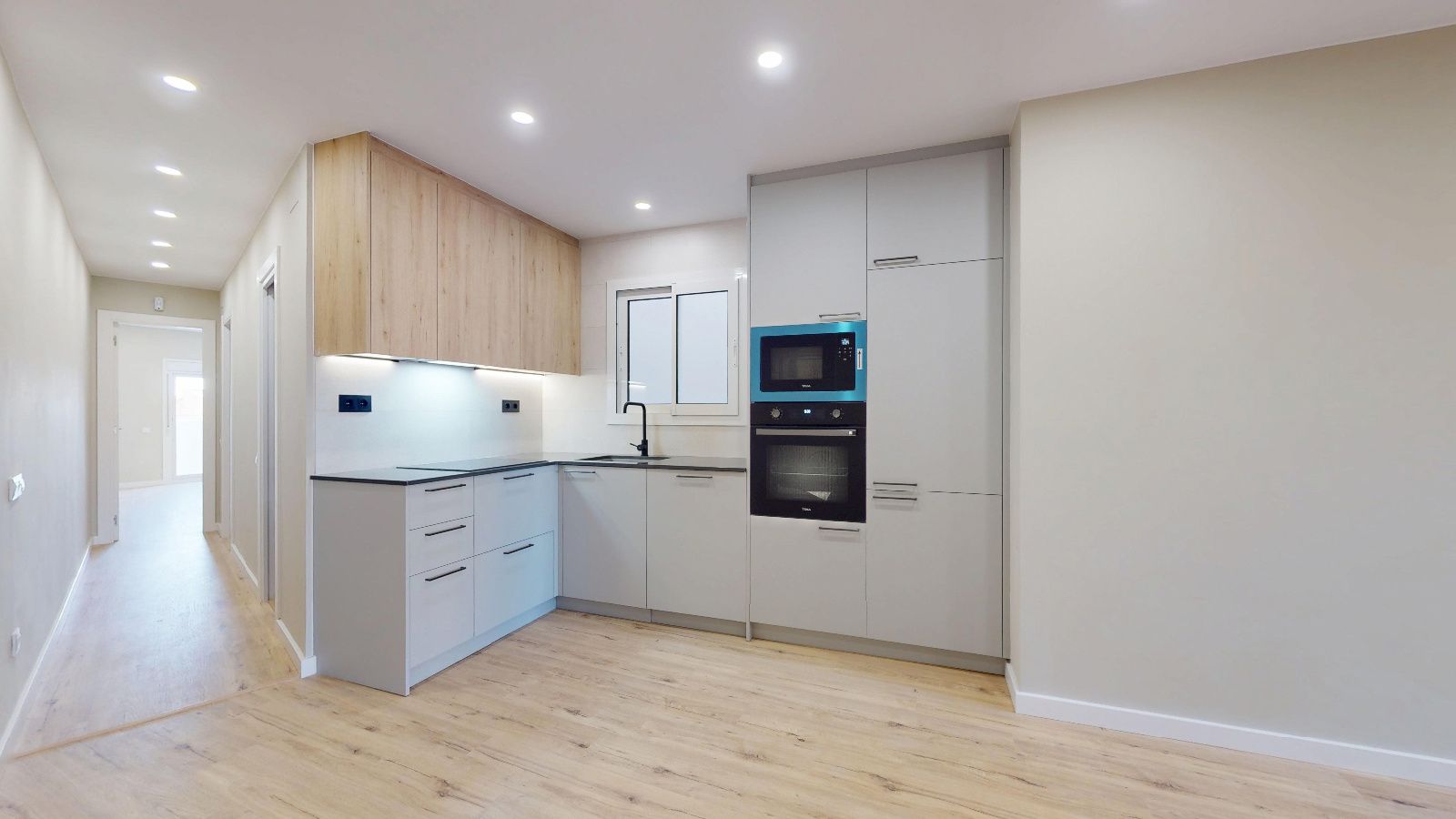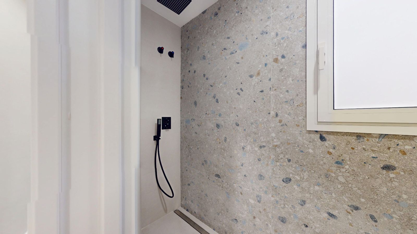 Denne leiligheten i en høy etasje er utvendig og har to orienteringer som gir godt dagslys og naturlig gjennomlufting. Den rolige gaten og utsikten gir en behagelig atmosfære, mens de to balkongene —6,95 m² og 2,13 m²— gir ekstra uteareal.