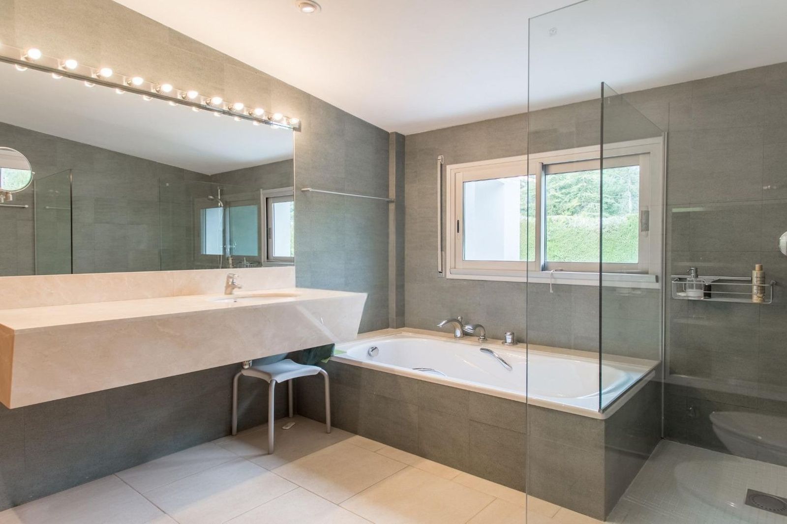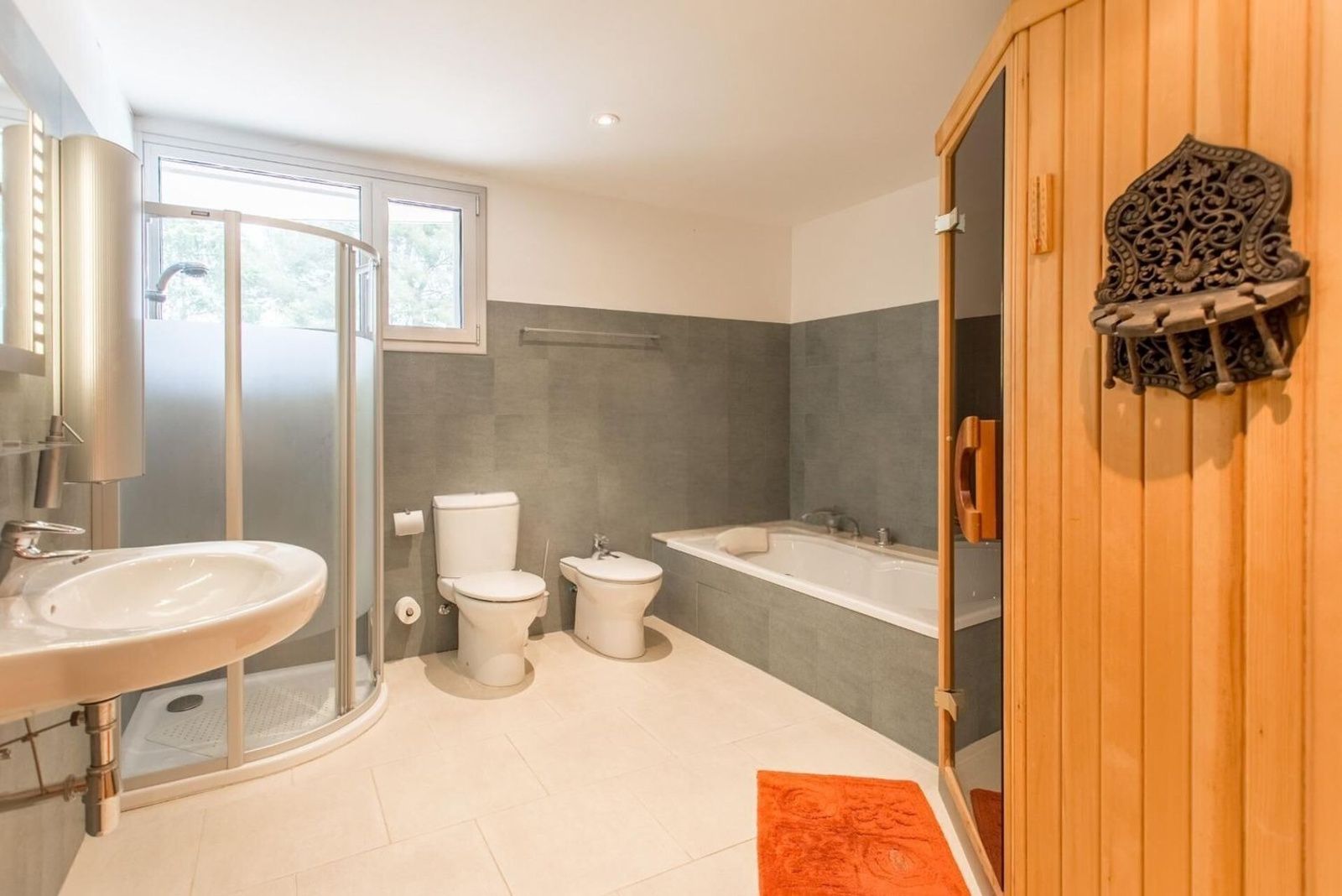 Den nedre etasjen består av et dobbelt soverom med innebygde garderober, et komplett bad med badstue samt et fleksibelt flerbruksrom som egner seg perfekt som TV-stue, treningsrom eller hjemmekino, med mulighet for å omgjøres til et ekstra soverom. Her finnes også bod og et fullt utstyrt teknisk rom. Fra denne etasjen er det direkte adkomst til hagen, chill-out-terrassen og det imponerende infinity-bassenget med åpen havutsikt.