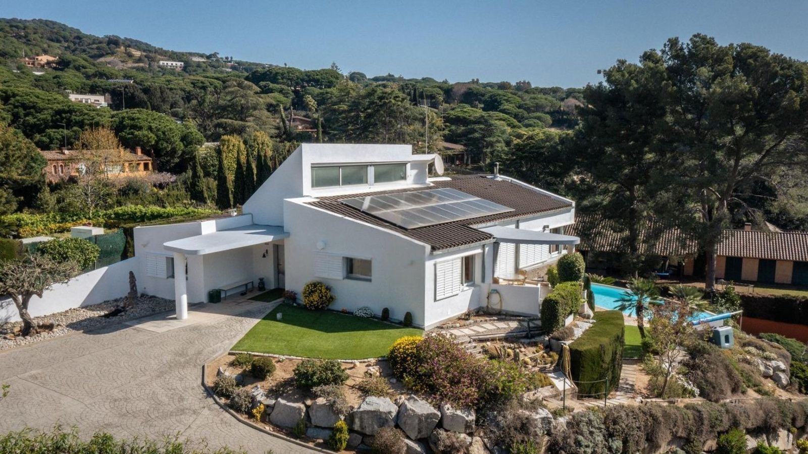 Vi presenterer en spektakulær eiendom med moderne design, beliggende i det prestisjefylte boligområdet Rocaferrera i Sant Andreu de Llavaneres. Dette privilegerte området på Maresme-kysten er kjent for sin eksklusivitet, ro og høye livskvalitet, kun 30 minutter fra Barcelona, med enkel tilgang til golfbaner, marinaer, internasjonale skoler og alle nødvendige tjenester.