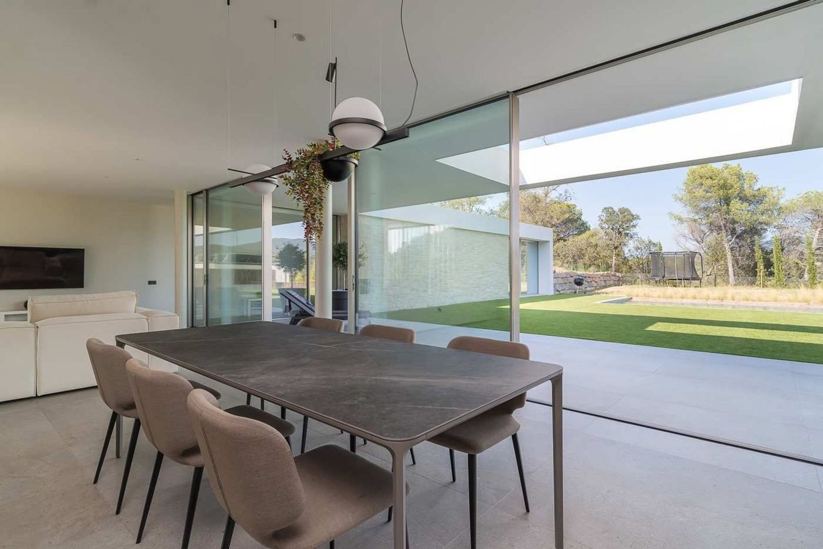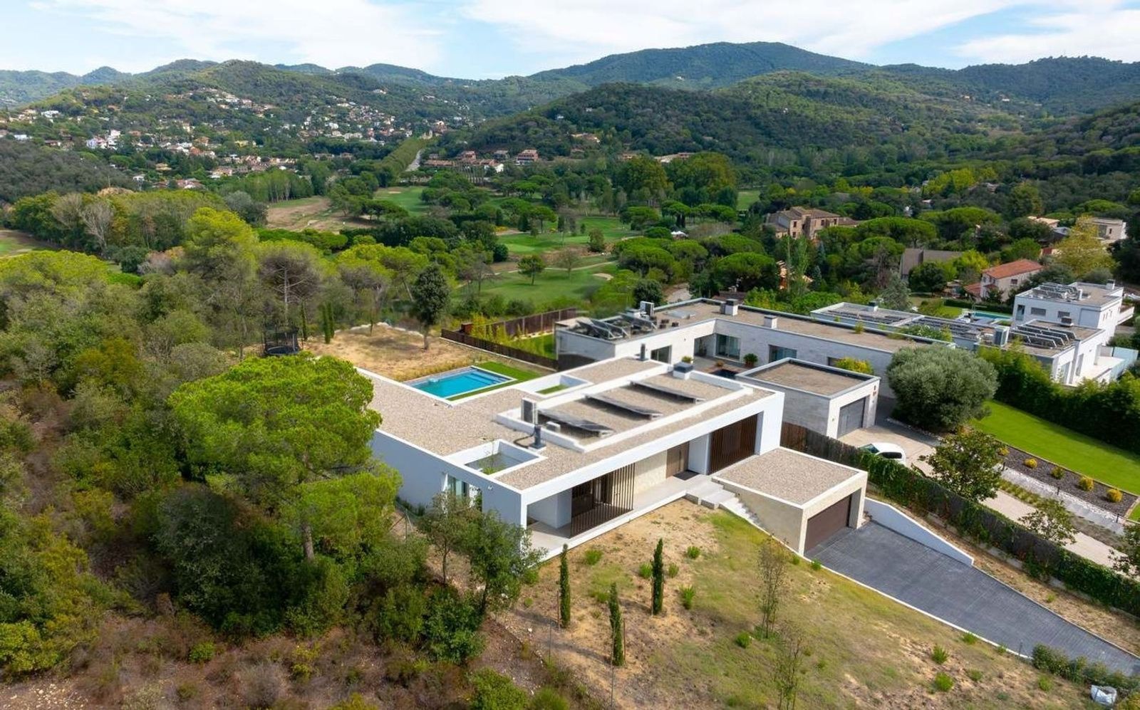 Denne moderne villaen ligger i et område verdsatt for sitt prestisjenivå og naturskjønne omgivelser, og tilbyr en boligopplevelse der arkitektur, teknologi og landskap er i balanse. Åpen utsikt mot golfbanen og fjellene preger eiendommens karakter og passer for dem som setter pris på romslighet, komfort og nærhet til uteområdene.