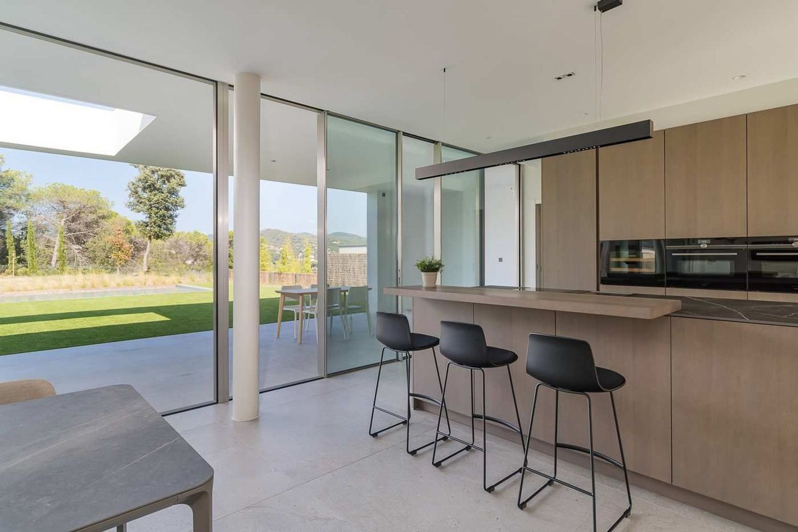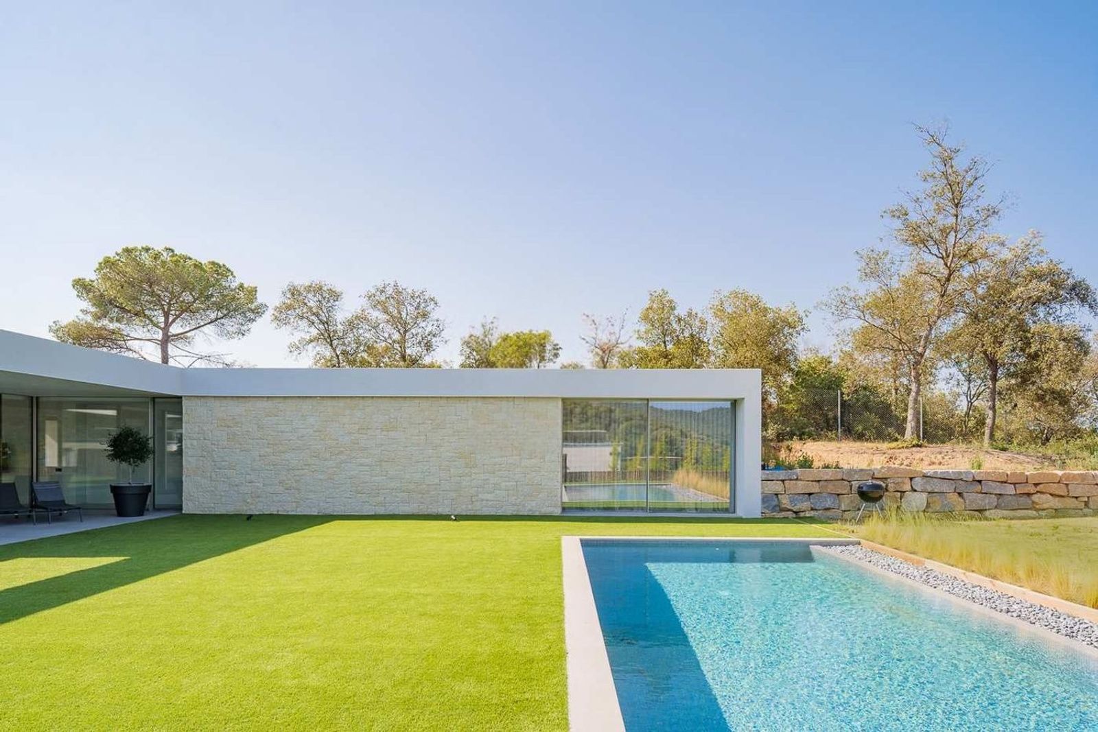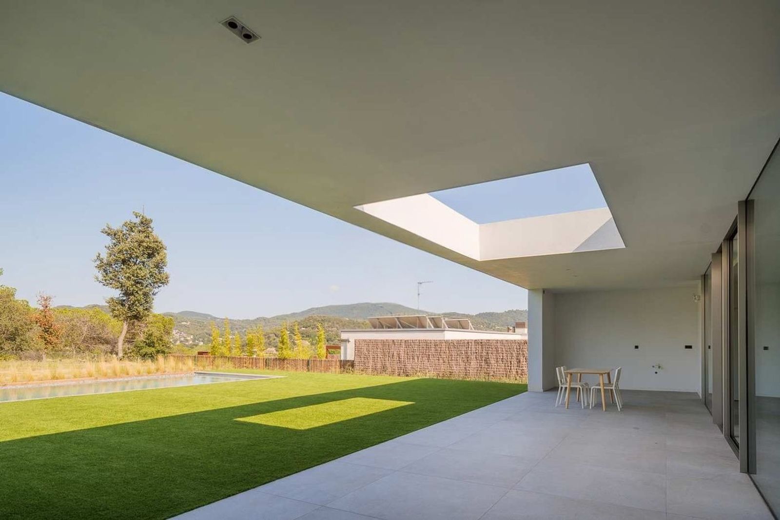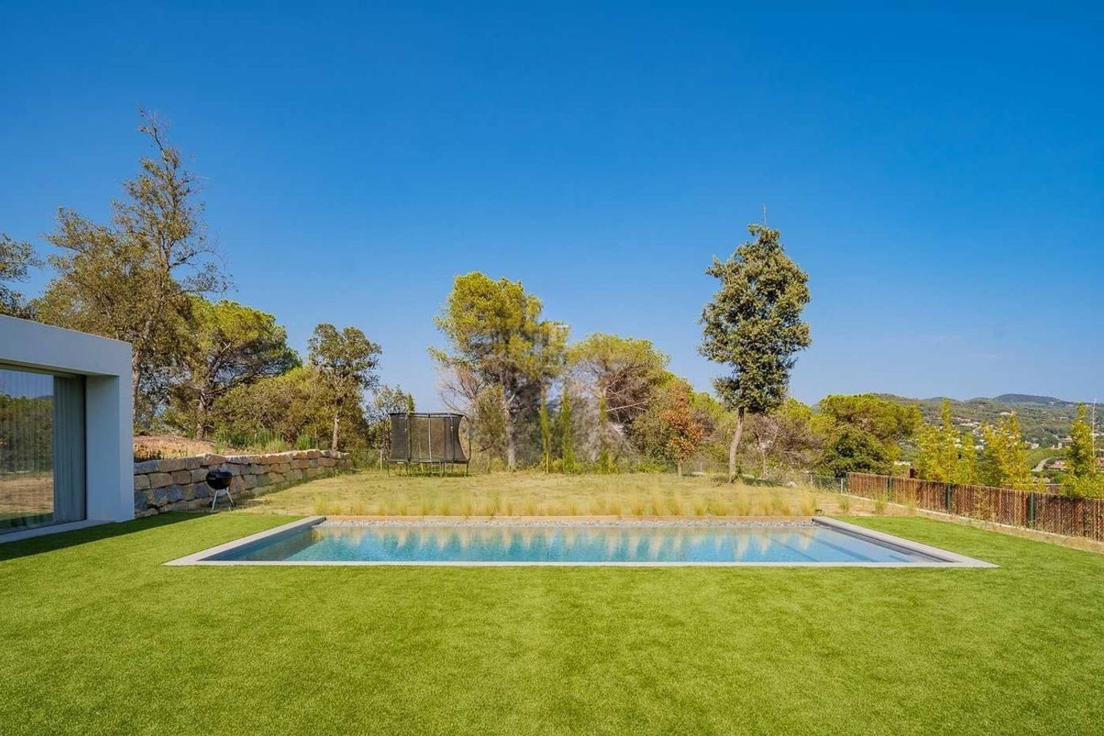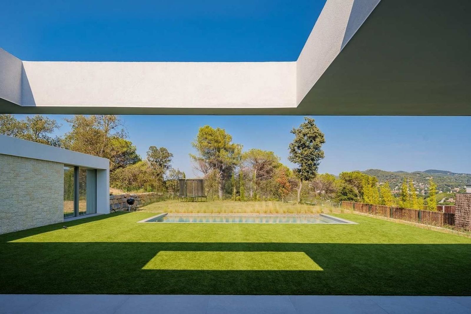 Den overbygde terrassen forlenger oppholdsrommene utendørs og skaper ideelle rammer for måltider ute eller avslapning. Basseng og hage er nøye anlagt og supplert med grillplass for sosialt samvær.