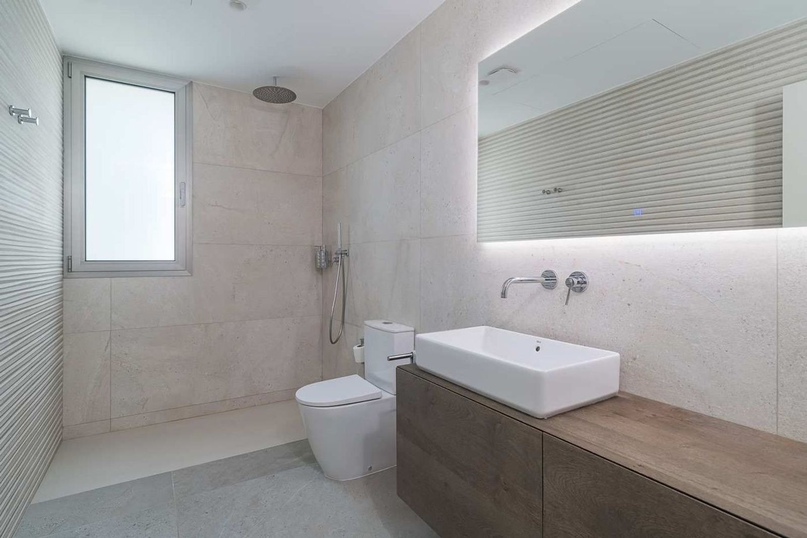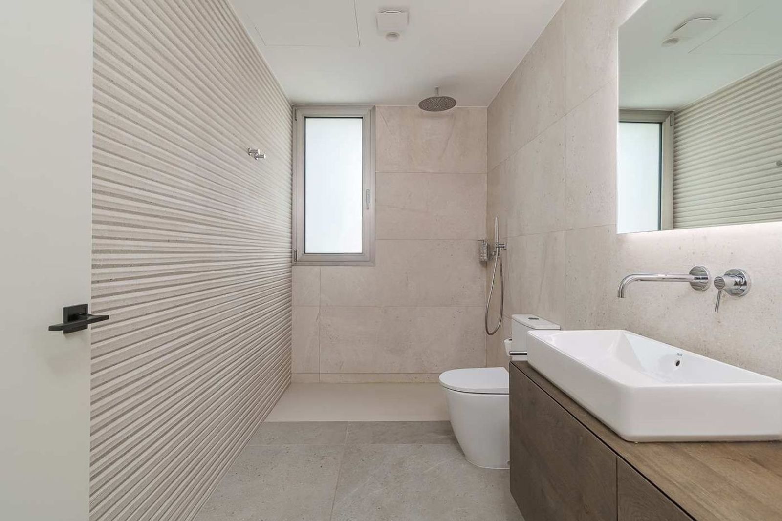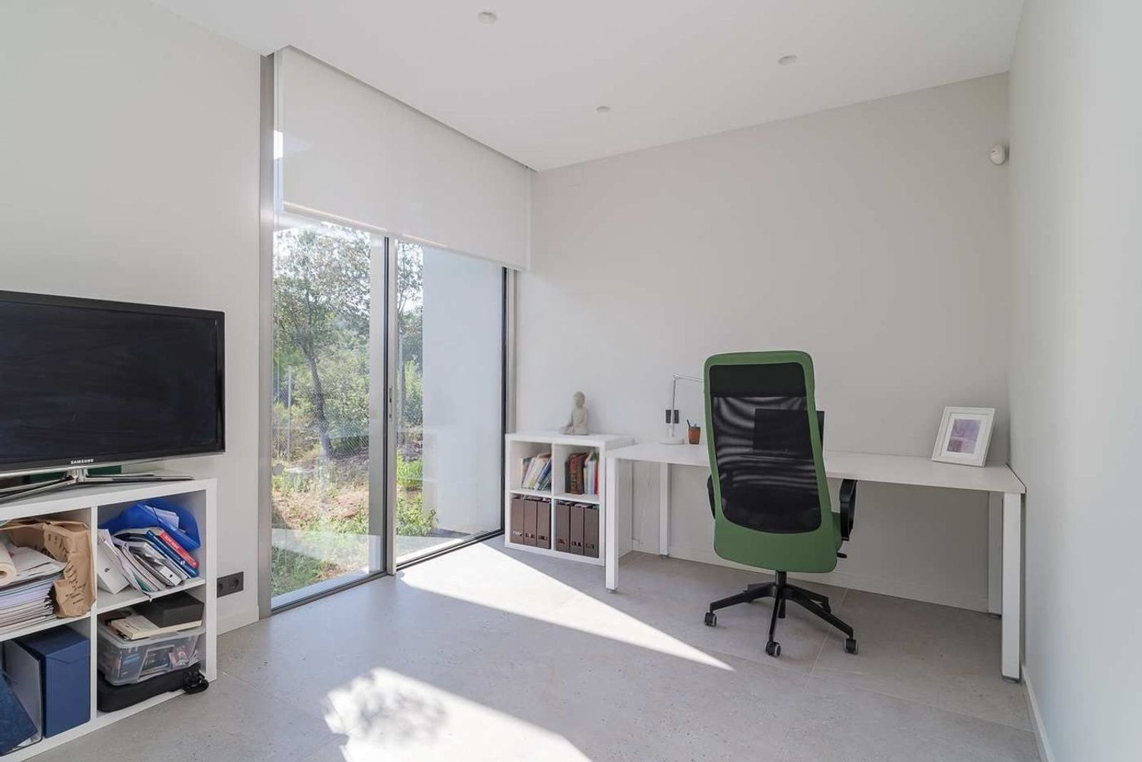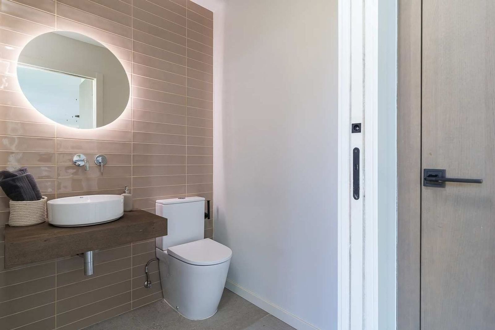 Det åpne kjøkkenet er utstyrt med kvalitetsapparater og er utformet for både funksjonell og sosial bruk. En separat, diskret integrert vaskeromsløsning ligger ved siden av. Et gjestetoalett og et hjemmekontor finnes også på dette planet.