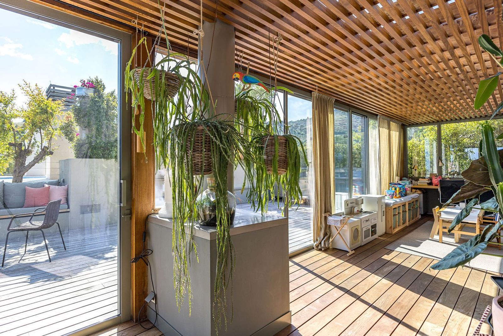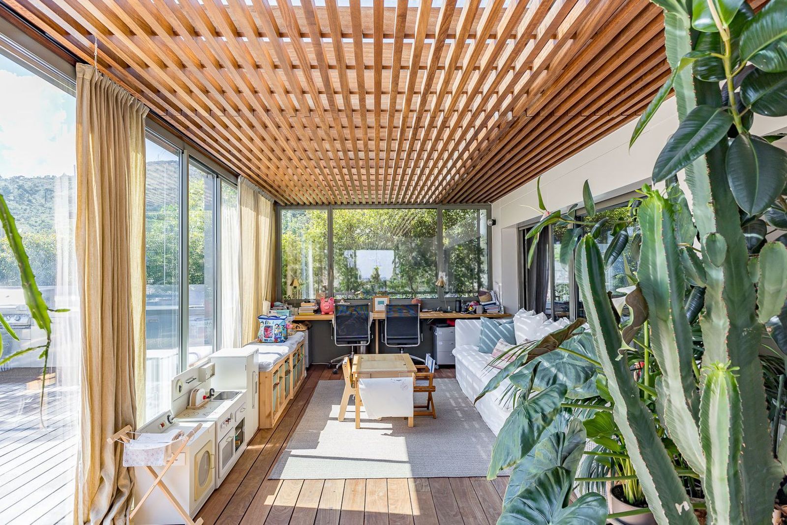 Boligen har to terrasser på totalt ca. 180 m². Hovedterrassen har privat basseng, sommerkjøkken med grill og en elegant chill-out sone – perfekt for utendørsopphold året rundt. Den andre terrassen, med tilgang fra kjøkkenet, egner seg utmerket som utespiseområde.