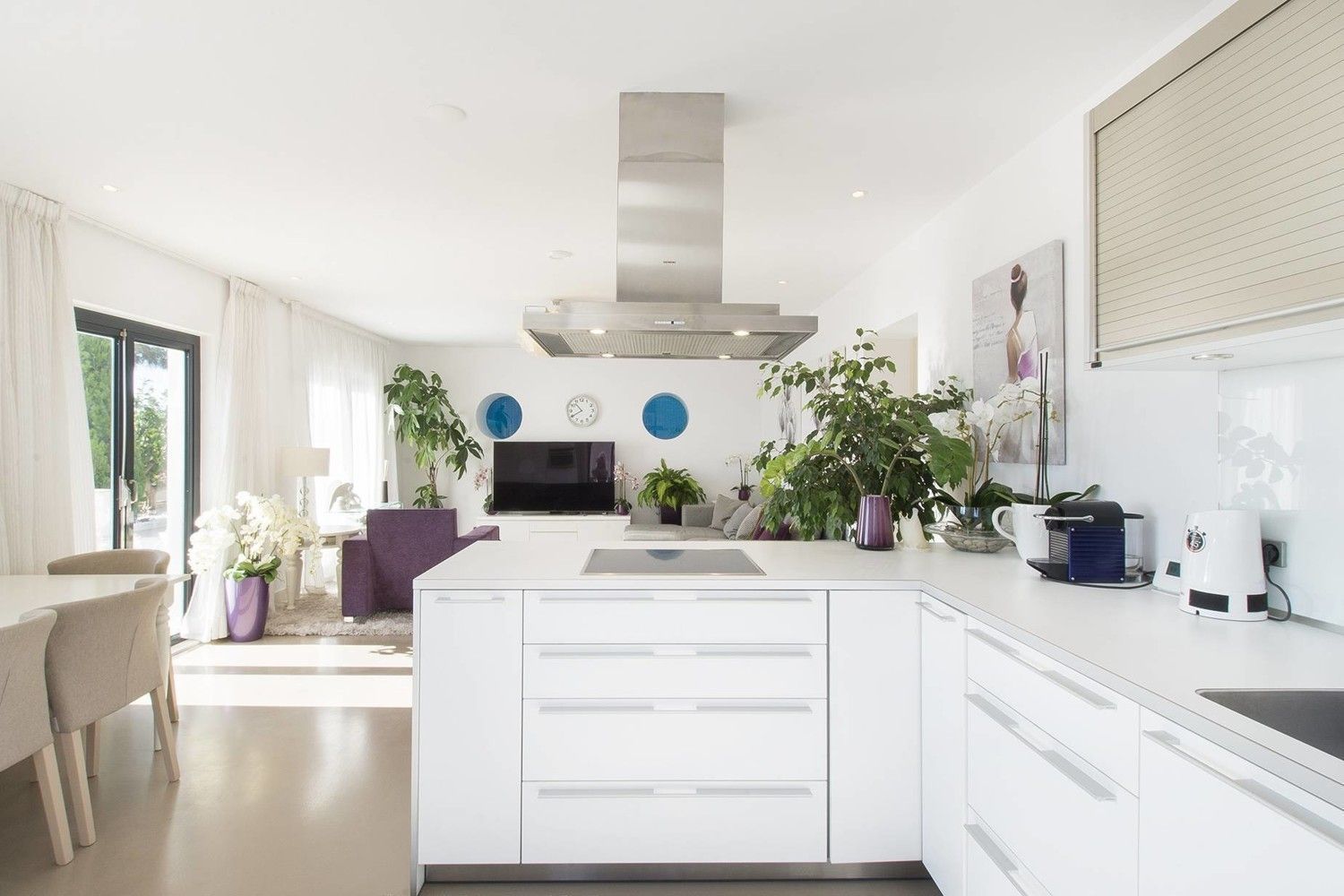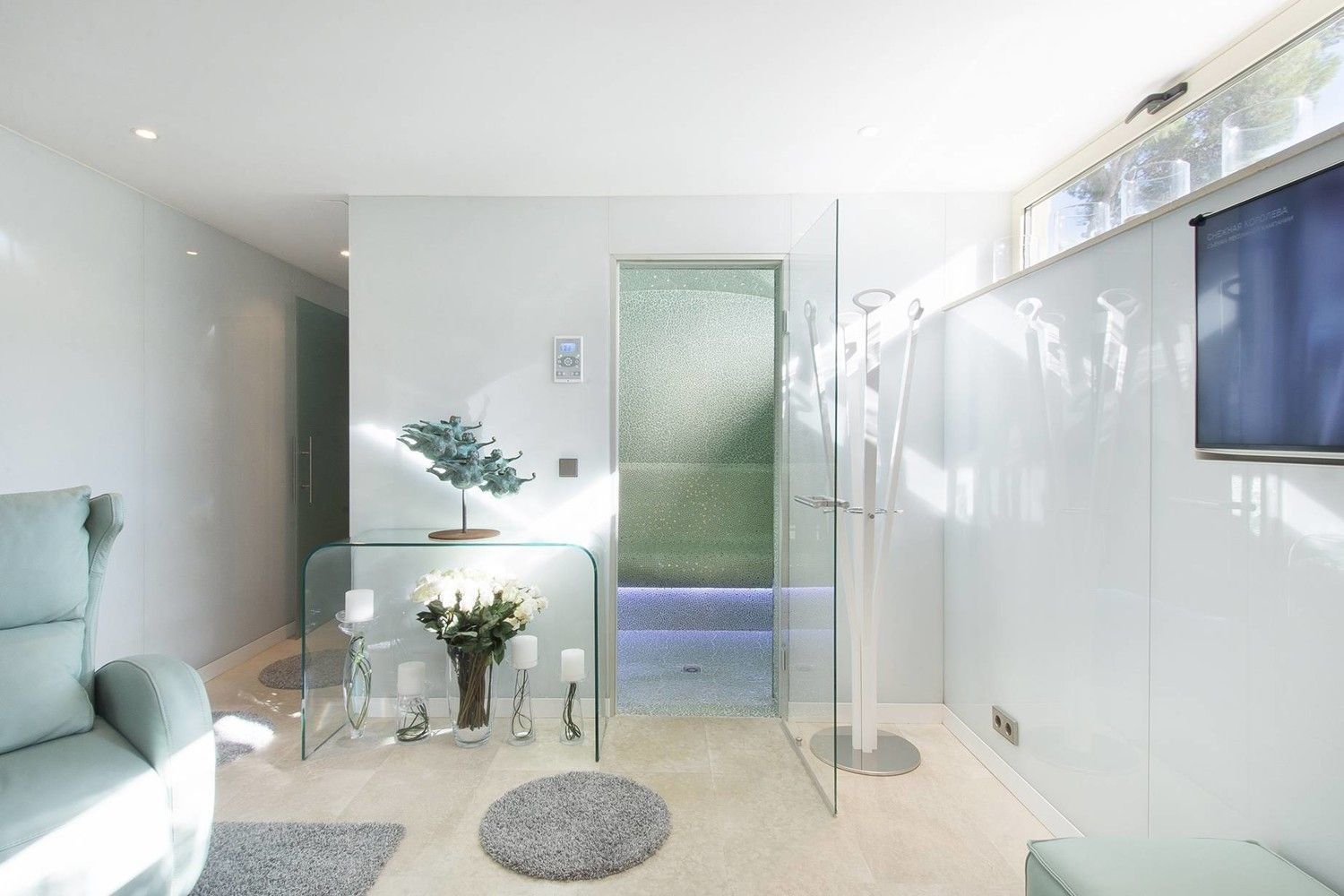 Eiendommen har også et chill-out område med infinity pool, grill og utendørs dusj, samt en gjesteleilighet med stue-spisestue, kjøkkenkrok, to soverom og bad.