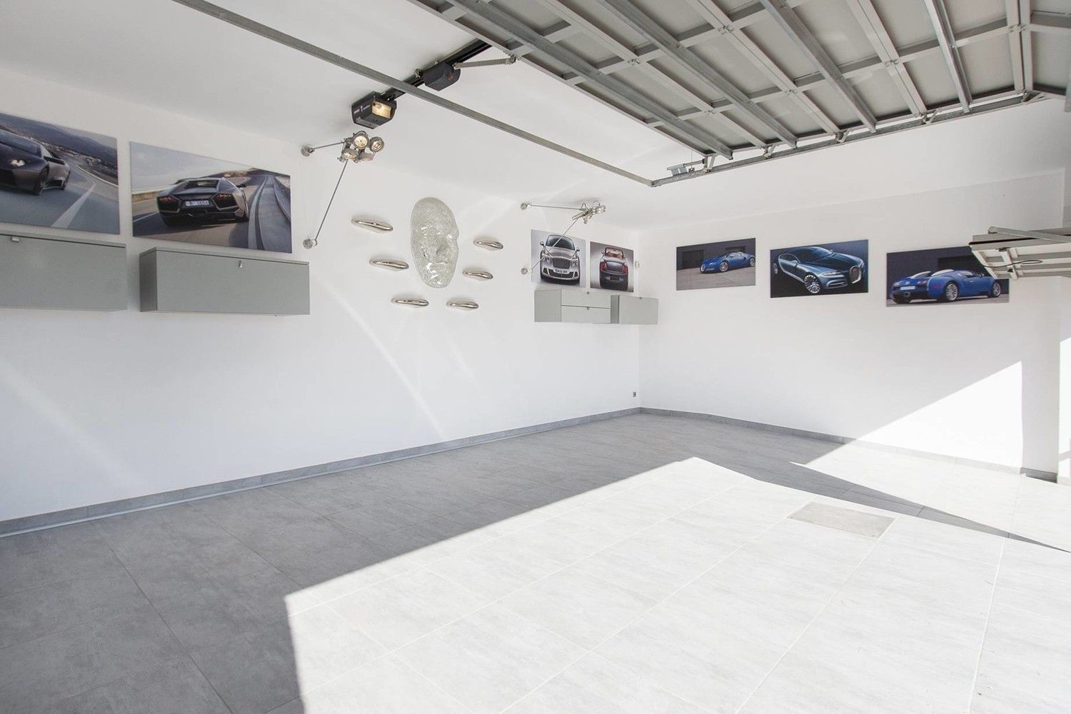 Ekstra: garasje for to biler, klimaanlegg, alarmsystem, automatiske persienner og moderne design.