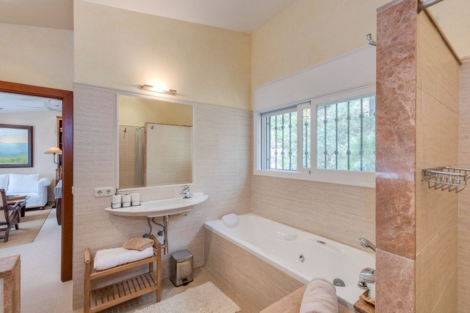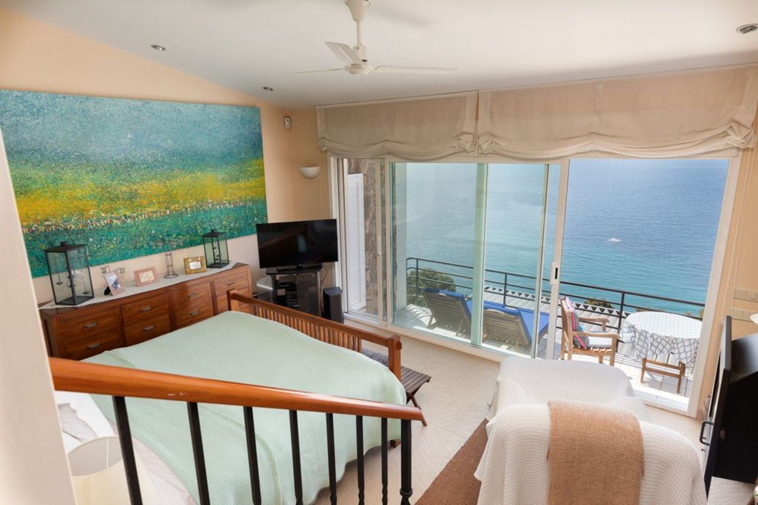 Hovedetasjen består av to soverom, to bad og et fullt utstyrt kjøkken. Fra soverommene er det direkte tilgang til en romslig terrasse med fantastisk utsikt over havet – et ideelt sted for å nyte den rolige atmosfæren og det vakre middelhavsmiljøet.