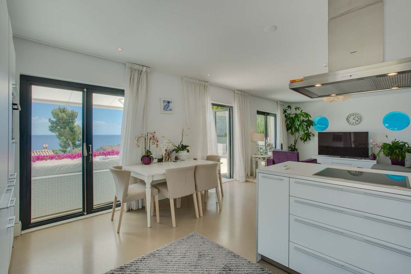 Hovedetasjen har en romslig stue og spisestue med store vinduer som rammer inn det vakre middelhavslandskapet og slipper inn rikelig med naturlig lys. På samme nivå finnes også et moderne, fullt utstyrt kjøkken med topp moderne hvitevarer samt et komplett bad.