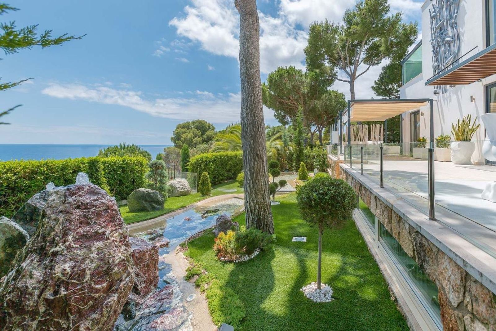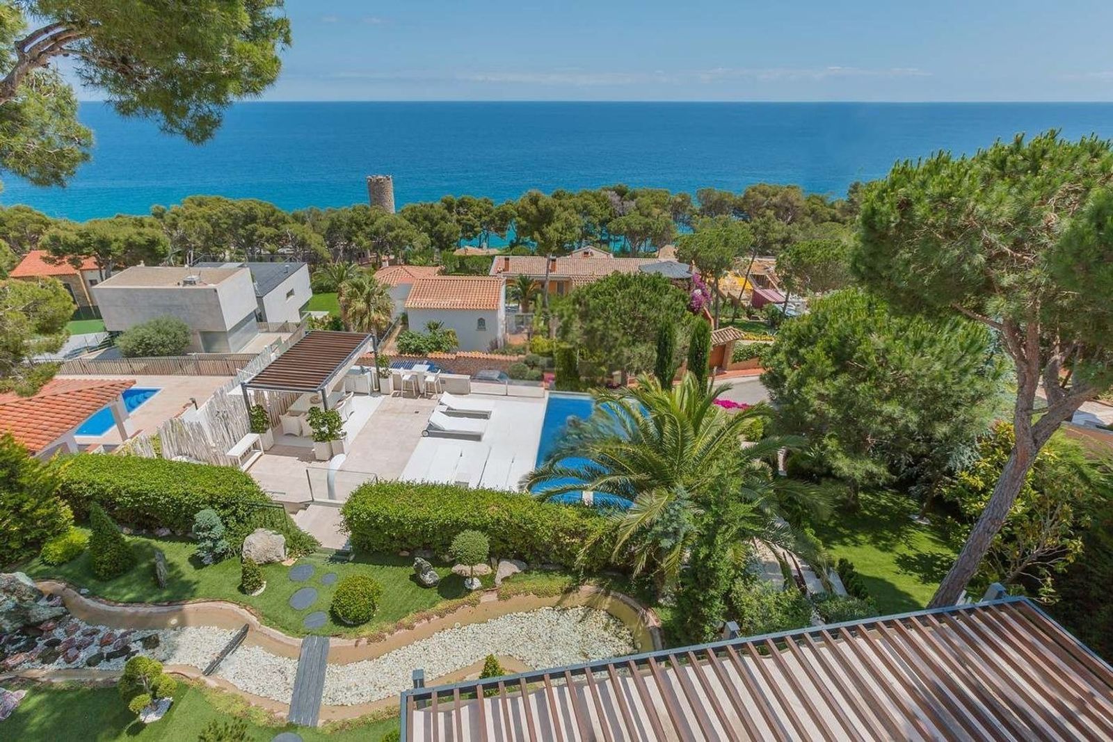 Uteområdet kompletterer eiendommen perfekt med en avslapningssone, en vakker japansk hage og et oppvarmet svømmebasseng. Eiendommen har også et gjestehus med to soverom, sikkerhetskameraer og privat parkering for to til tre biler.