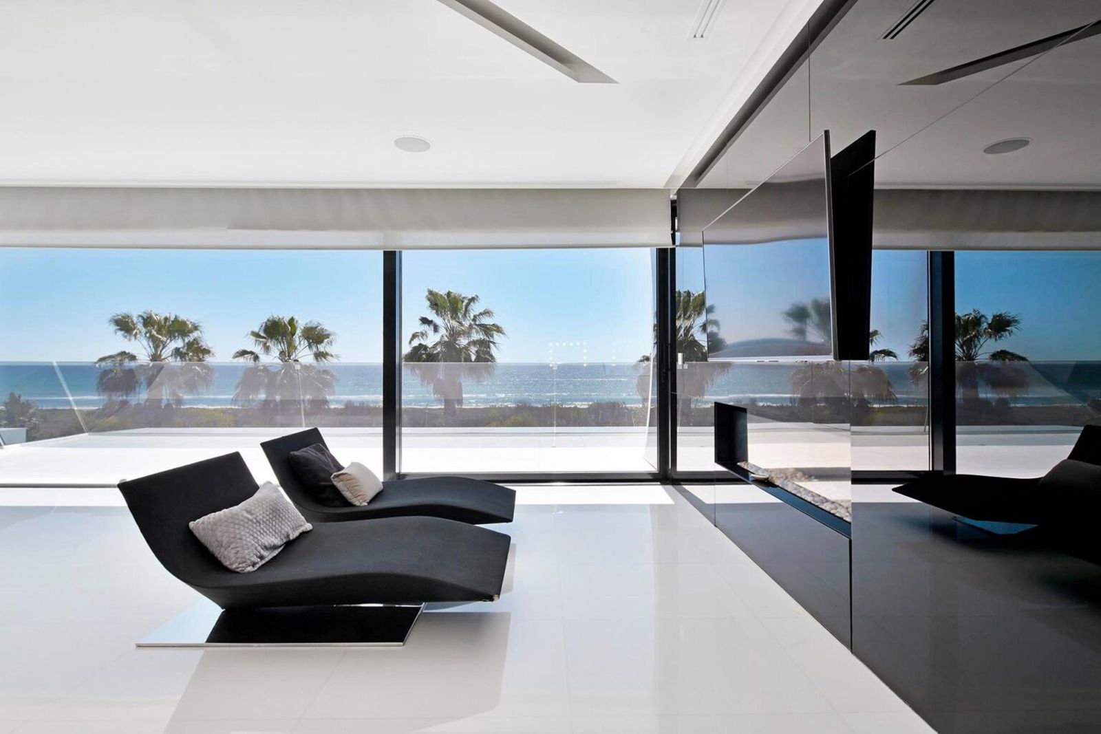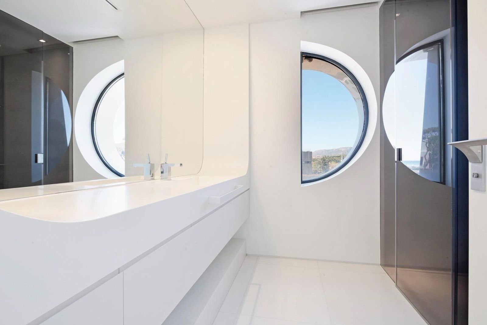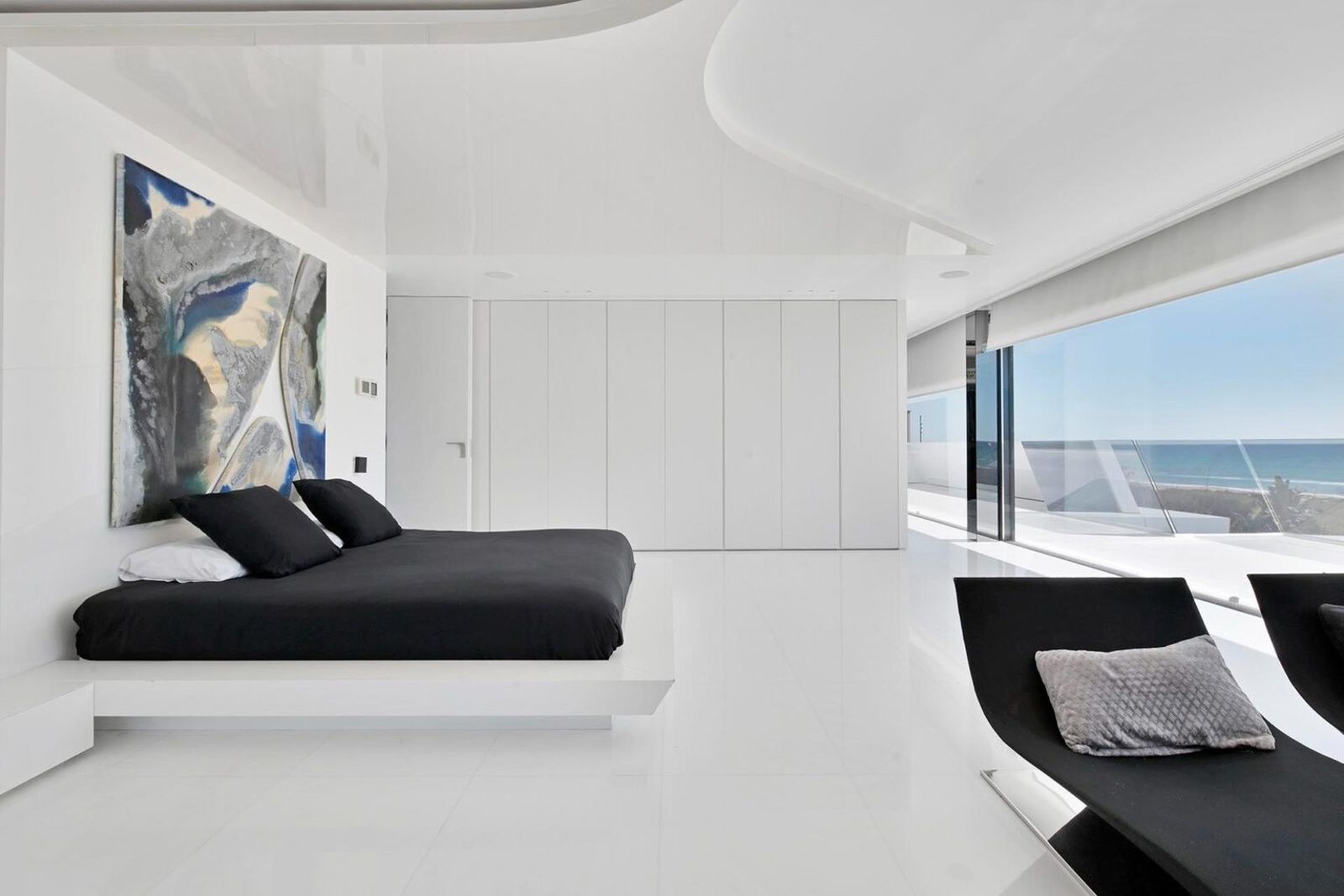 Boligen tilbyr omtrent 1 250 m² bygget areal på en tomt på 1 500 m² og er fordelt over fem nivåer forbundet med en panoramalift. Blant høydepunktene finner man en romslig stue og spisestue på 135 m², et fullt utstyrt kjøkken med eksklusive hvitevarer fra Gaggenau samt fem elegante soverom, inkludert en imponerende hovedsuite på 140 m² med privat terrasse og havutsikt.