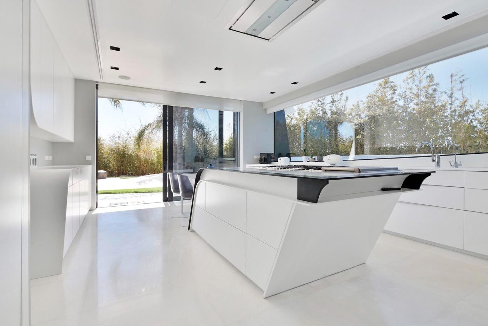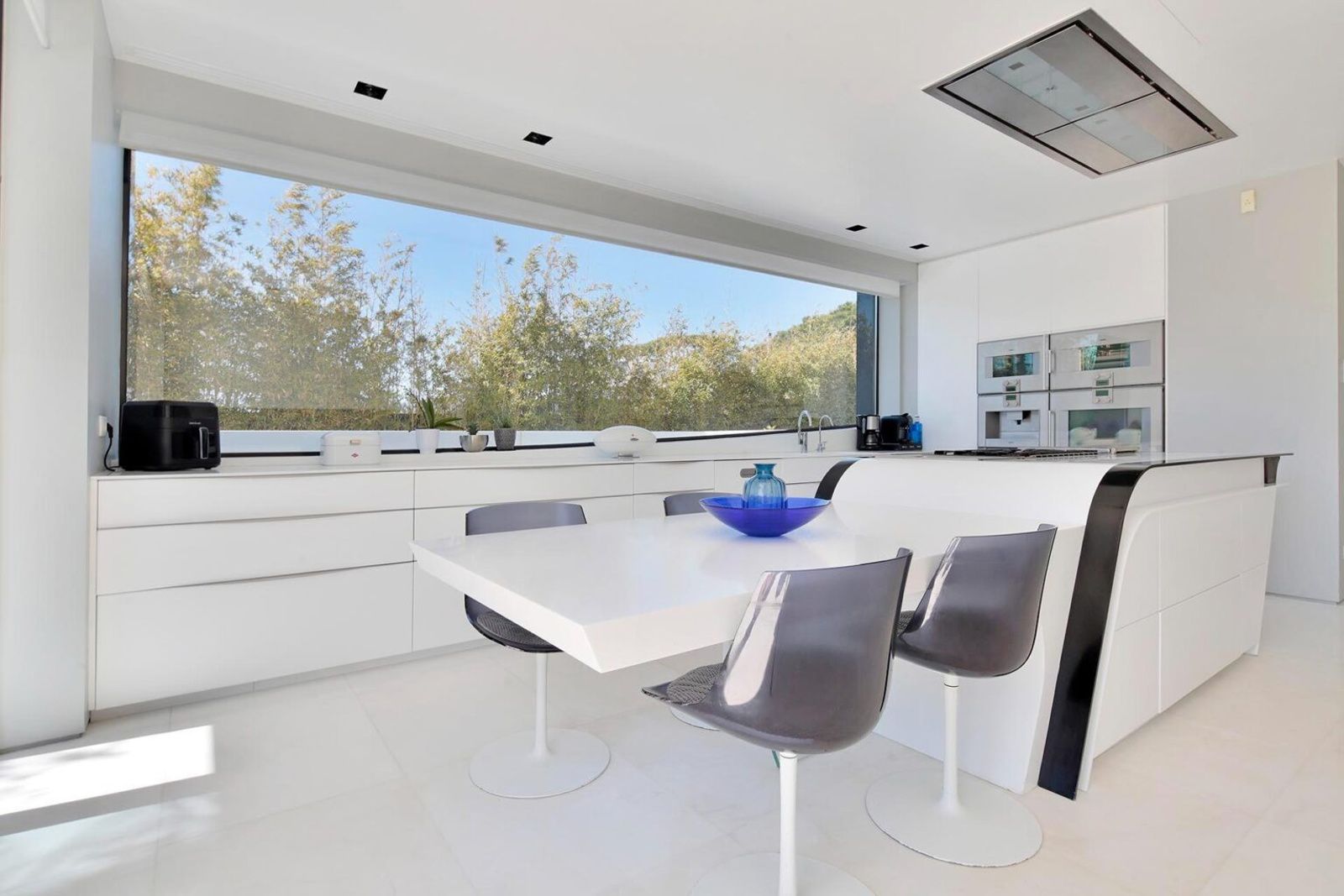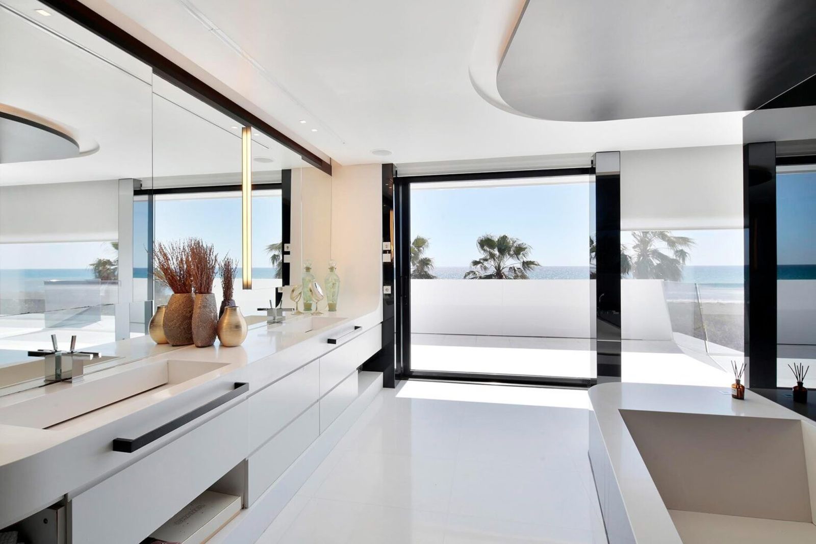 Boligen tilbyr omtrent 1 250 m² bygget areal på en tomt på 1 500 m² og er fordelt over fem nivåer forbundet med en panoramalift. Blant høydepunktene finner man en romslig stue og spisestue på 135 m², et fullt utstyrt kjøkken med eksklusive hvitevarer fra Gaggenau samt fem elegante soverom, inkludert en imponerende hovedsuite på 140 m² med privat terrasse og havutsikt.