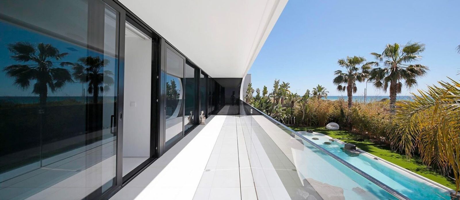 Denne spektakulære moderne villaen ligger i første linje mot havet i Gavà Mar, et av de mest eksklusive boligområdene på kysten av Barcelona. Eiendommen er tegnet av det anerkjente arkitektstudioet A-Cero og kombinerer unik arkitektur, privatliv og åpne utsikter mot Middelhavet.