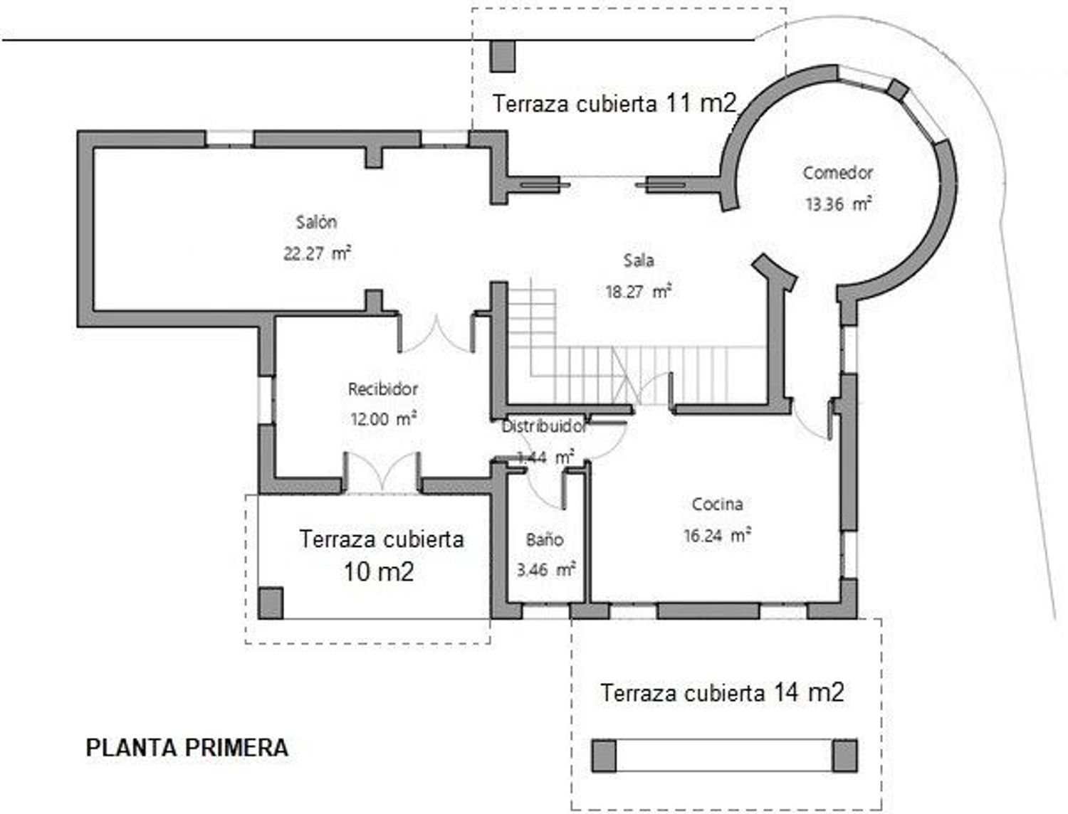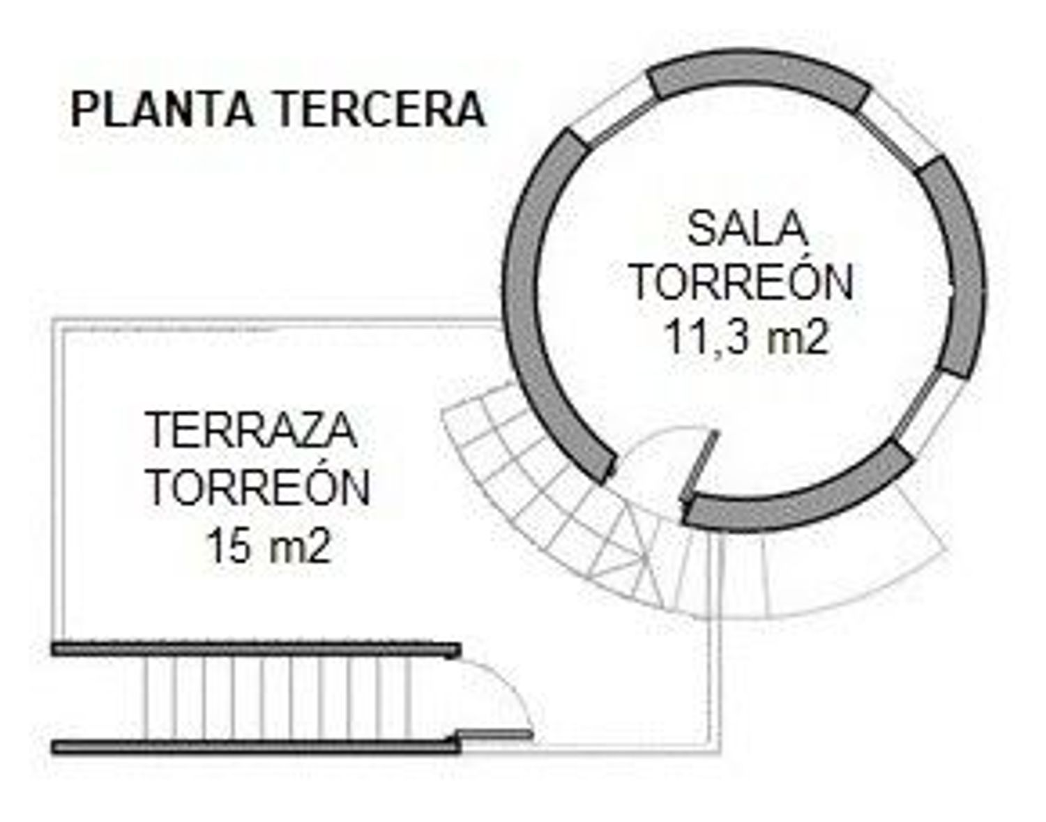 Hagen, med middelhavsvoksende planter, overbygde terrasser og avslapningsområder, gir et ideelt sted å nyte naturen og slappe av. Blant fasilitetene er en håndlaget stein-grill og mulighet for å installere et basseng med sjøutsikt, som maksimerer opplevelsen av middelhavslivet. Hvert element i Casa Torreón er nøye designet for å maksimere forbindelsen til sjøen og den omkringliggende naturen, og gjør dette til en eksklusiv, rolig og unik bolig ved Middelhavet.