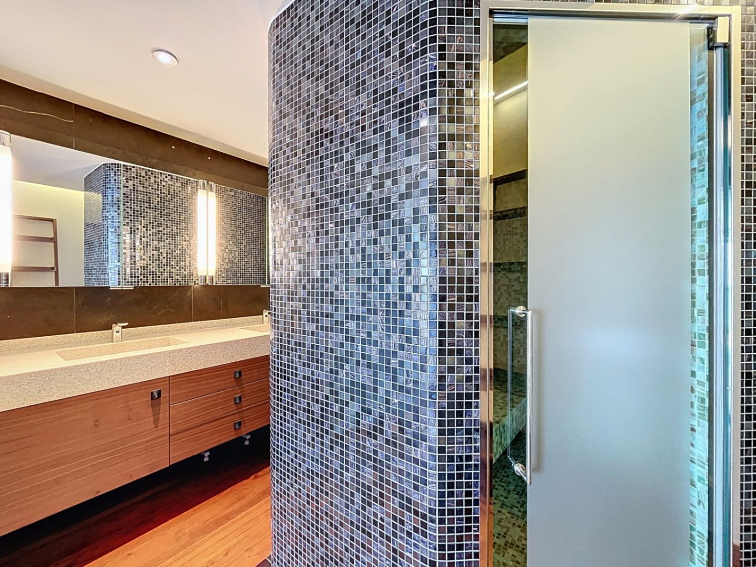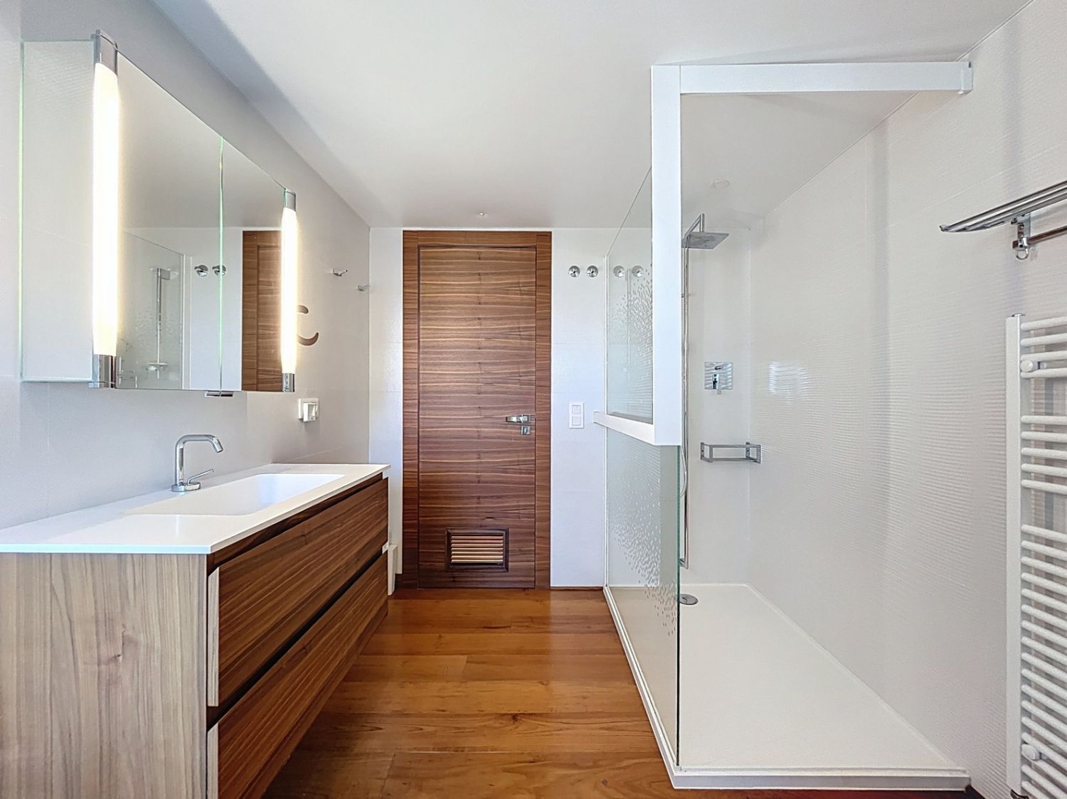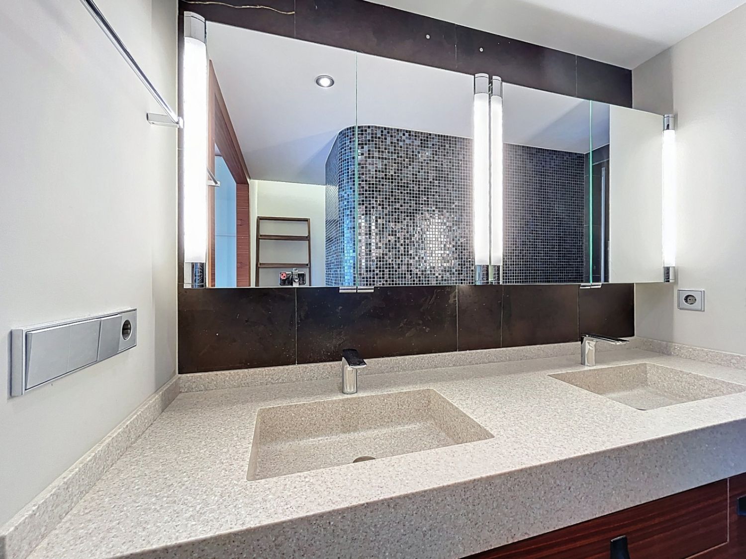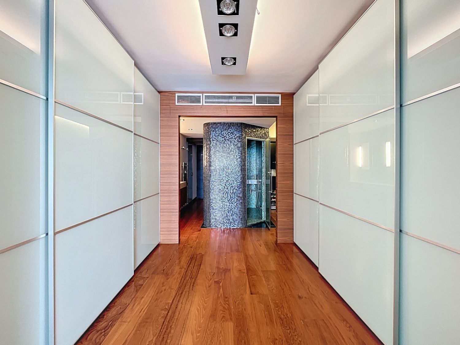 Soveområdet består av fire soverom og tre komplette bad. Hovedbadet skiller seg ut med tyrkisk bad og massasjedusj, noe som gir økt komfort og velvære.