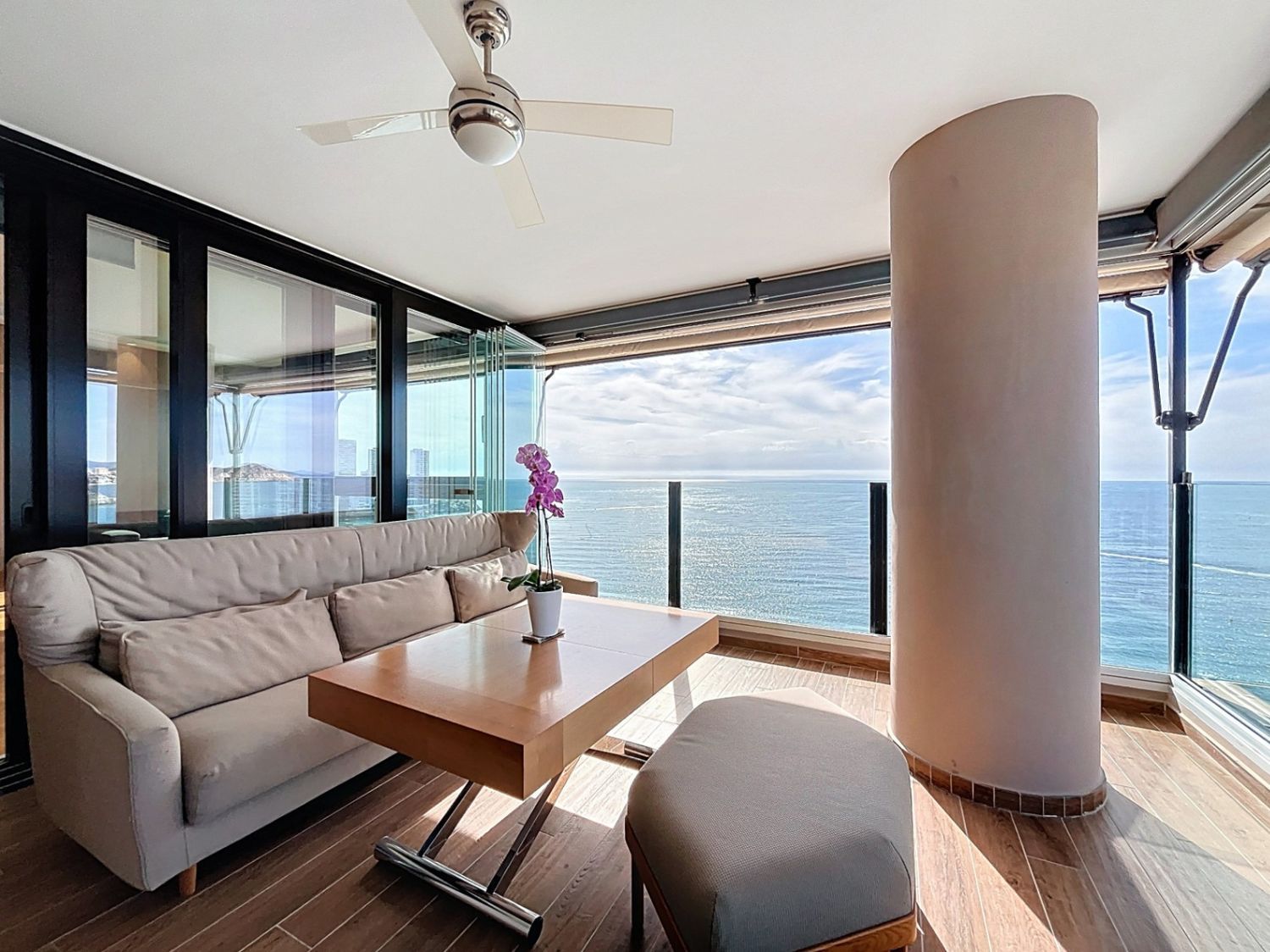 Denne leiligheten ligger på Avenida del Mediterráneo, i første linje ved Playa de Levante i Benidorm, og tilbyr en attraktiv kombinasjon av beliggenhet, romslighet og høy standard i et av byens mest etterspurte områder.