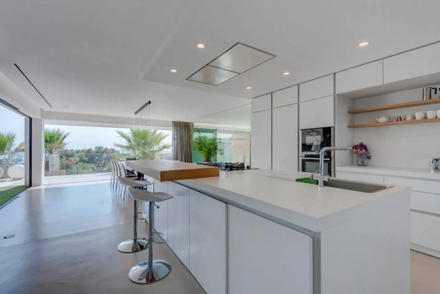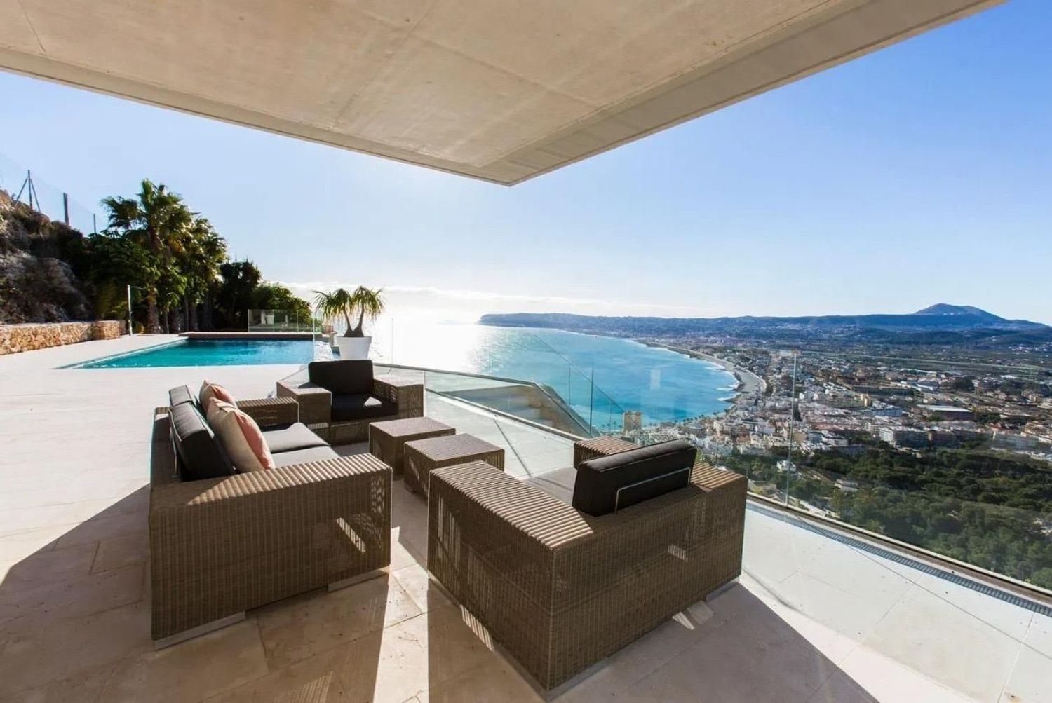 En heis forbinder alle etasjer og sikrer enkel tilgang i hverdagen. I den første boligen finner man i toppetasjen flere suiter med private bad, et sommerkjøkken og tilgang til en stor terrasse med åpen havutsikt, perfekt for avslapning.