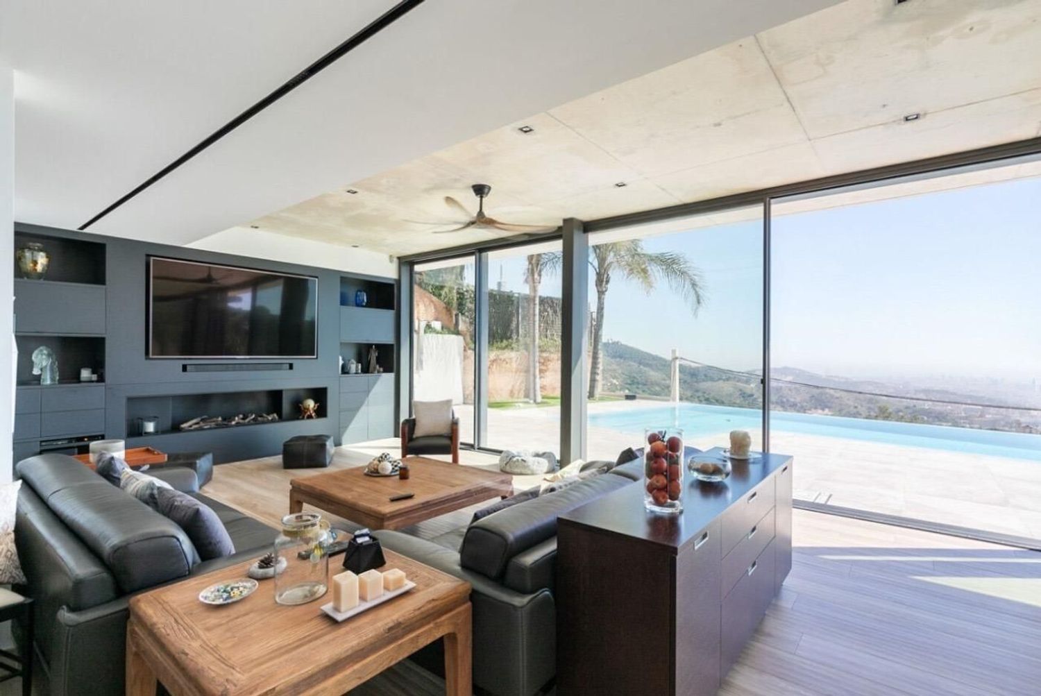 Uteområdene er designet som en naturlig forlengelse av hjemmet, med et imponerende to-nivå basseng, avslapningsområder og en utendørs treningssone. Eiendommen har også god parkeringskapasitet for flere biler.