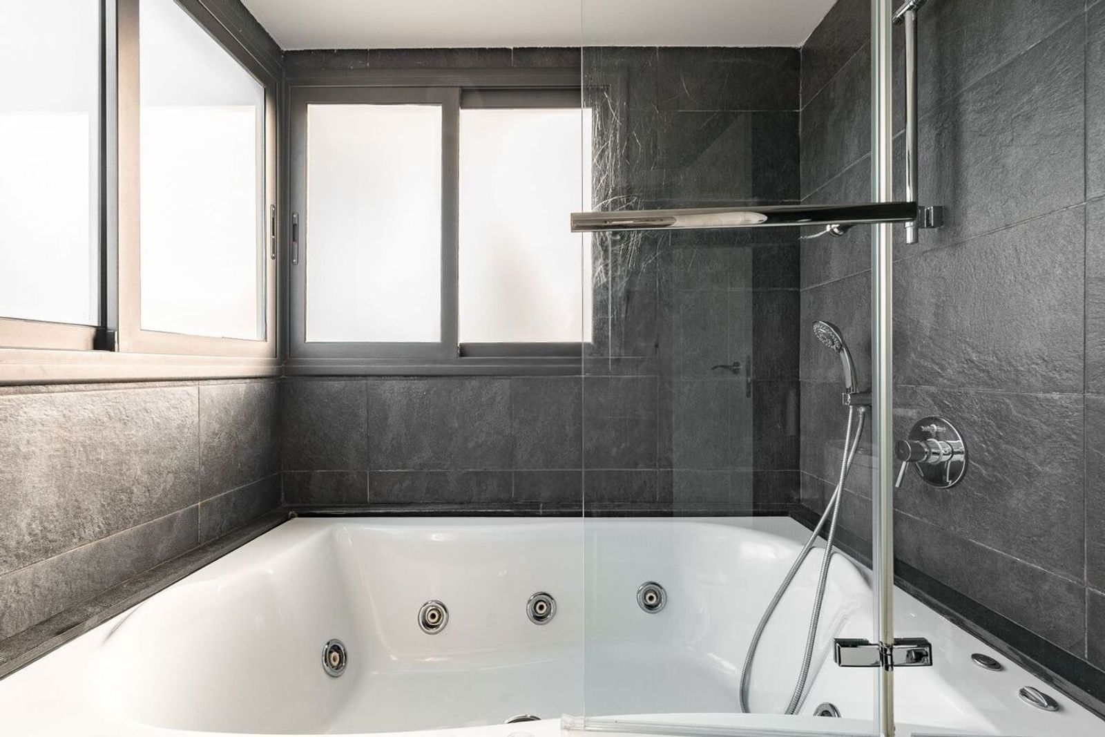 Boligen har over 200 m² fordelt på fire etasjer med privat heis. Den har fire soverom og tre bad, med lyse rom og høy standard.